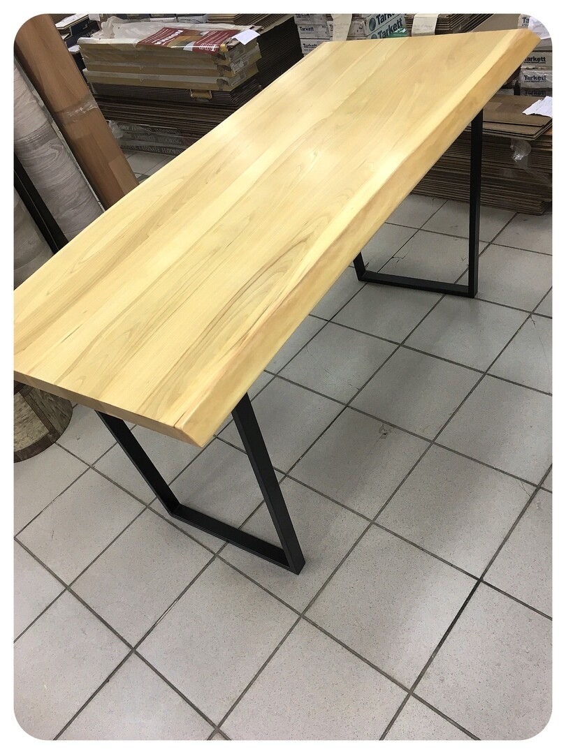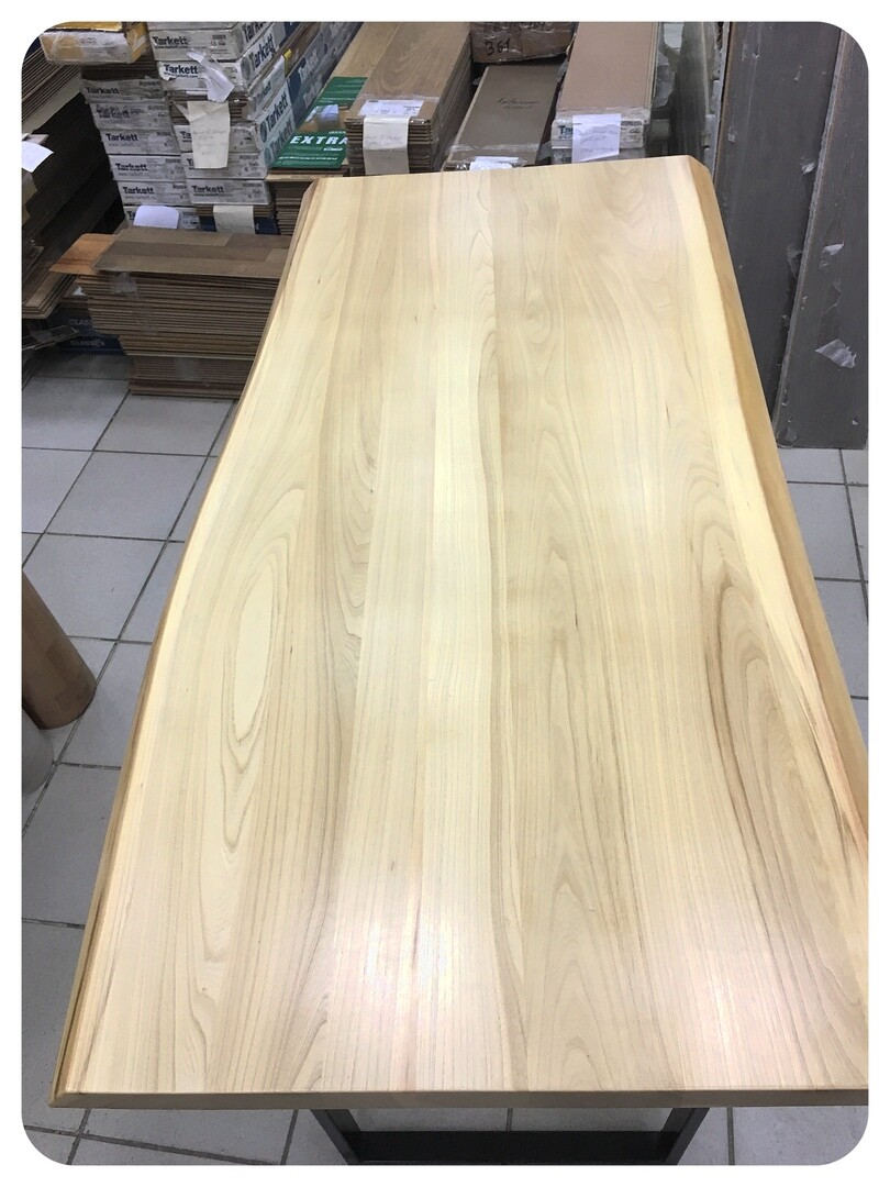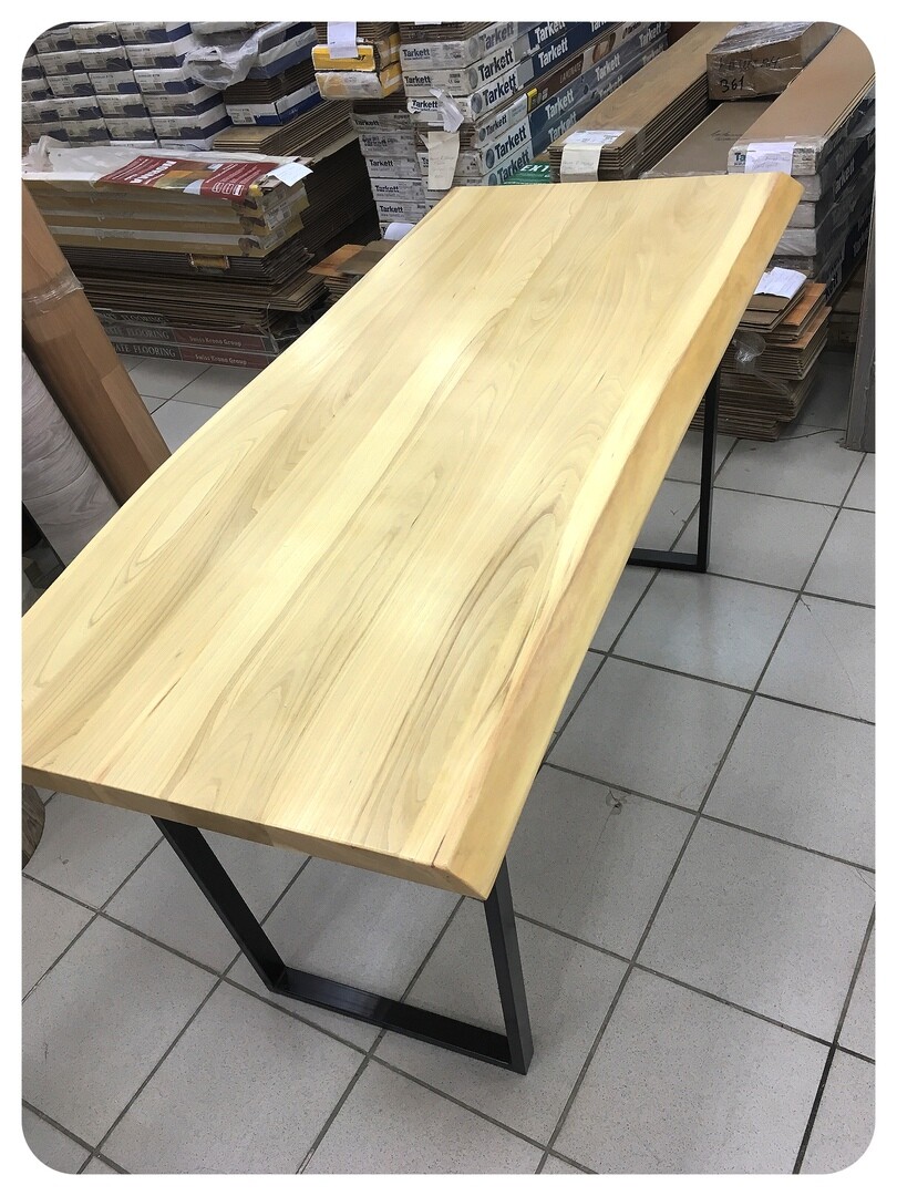 Эксклюзивный стол изготовлен из цельных слэбов вяза и металлических ножек.Для обработки столешницы использовался масловоск. За счет использования масловоска мы добились естественного визуального эффекта и сохранения текстуры натурального дерева.