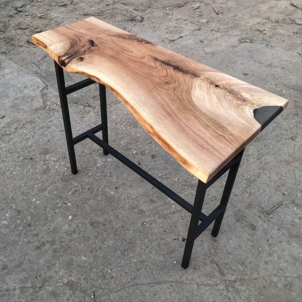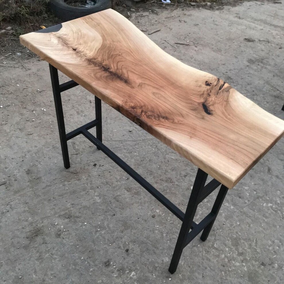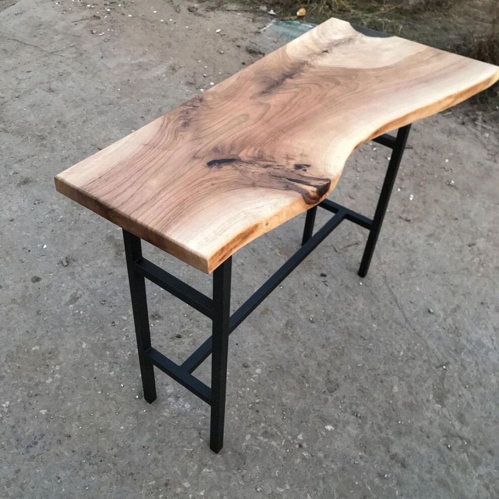Барный стол из массива дерева орех, выполнен по современным технологиям. Для этого стола мы отобрали красивый слэб ореха. Поверхность стола идеально зашлифована и покрыта бесцветным маслом , что предотвратит попадание влаги и дальнейшее разбухание древесины.Край же стола сделан естественным, он подчеркивает природную красоту дерева.Яркий и лаконичный рисунок, очень сильно выделяется по центру. Металлическое подстолье, выполненное из металического профиля создает идеальную конструкцию крепкого стола.