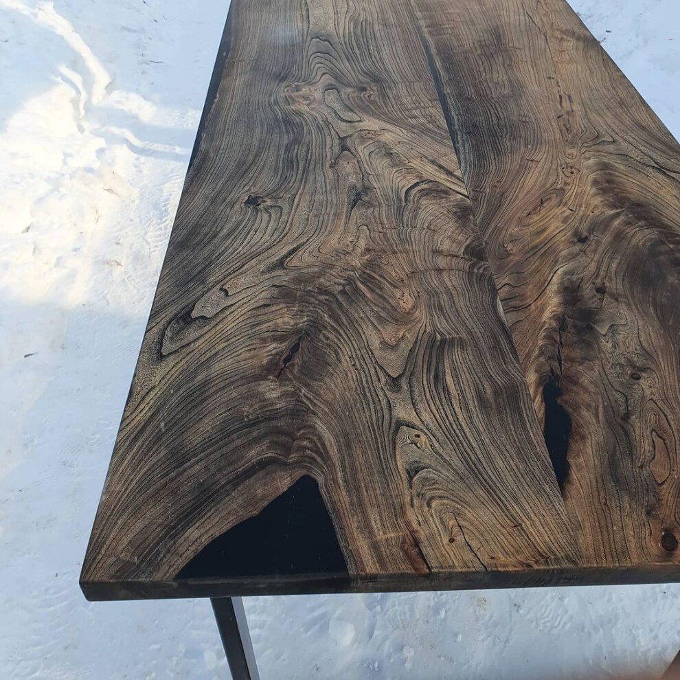 Мы начинаем заливать, дальше мы покрываем стол маслом или лаком. Затем, изготавливаем и красим ножки , после этого мы собираем вместе с ножками стол, фотографируем вам, если все хорошо ,вы отправляете вторую часть.
