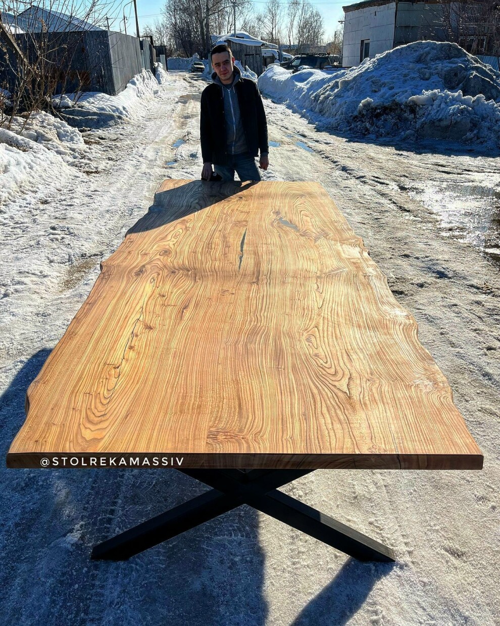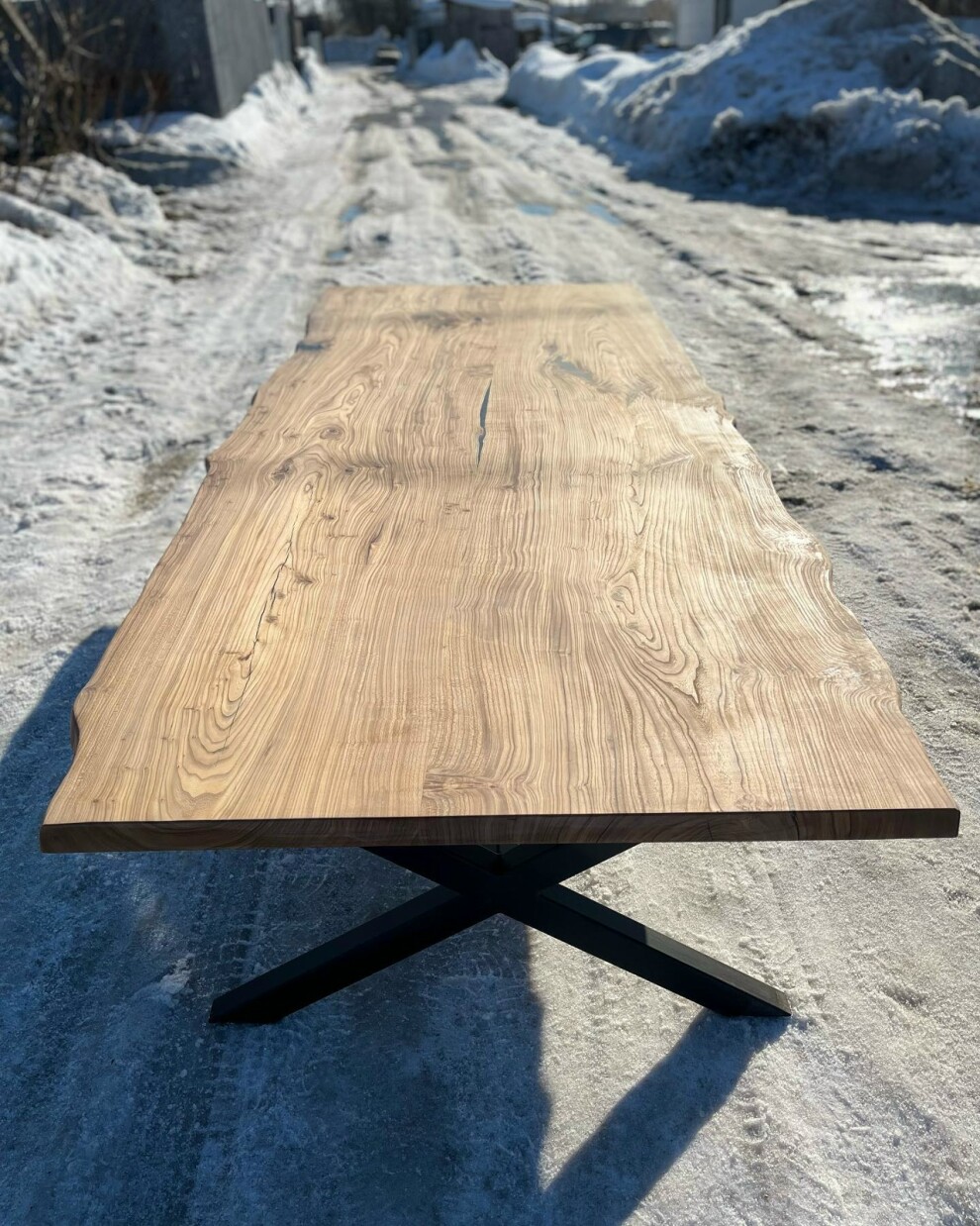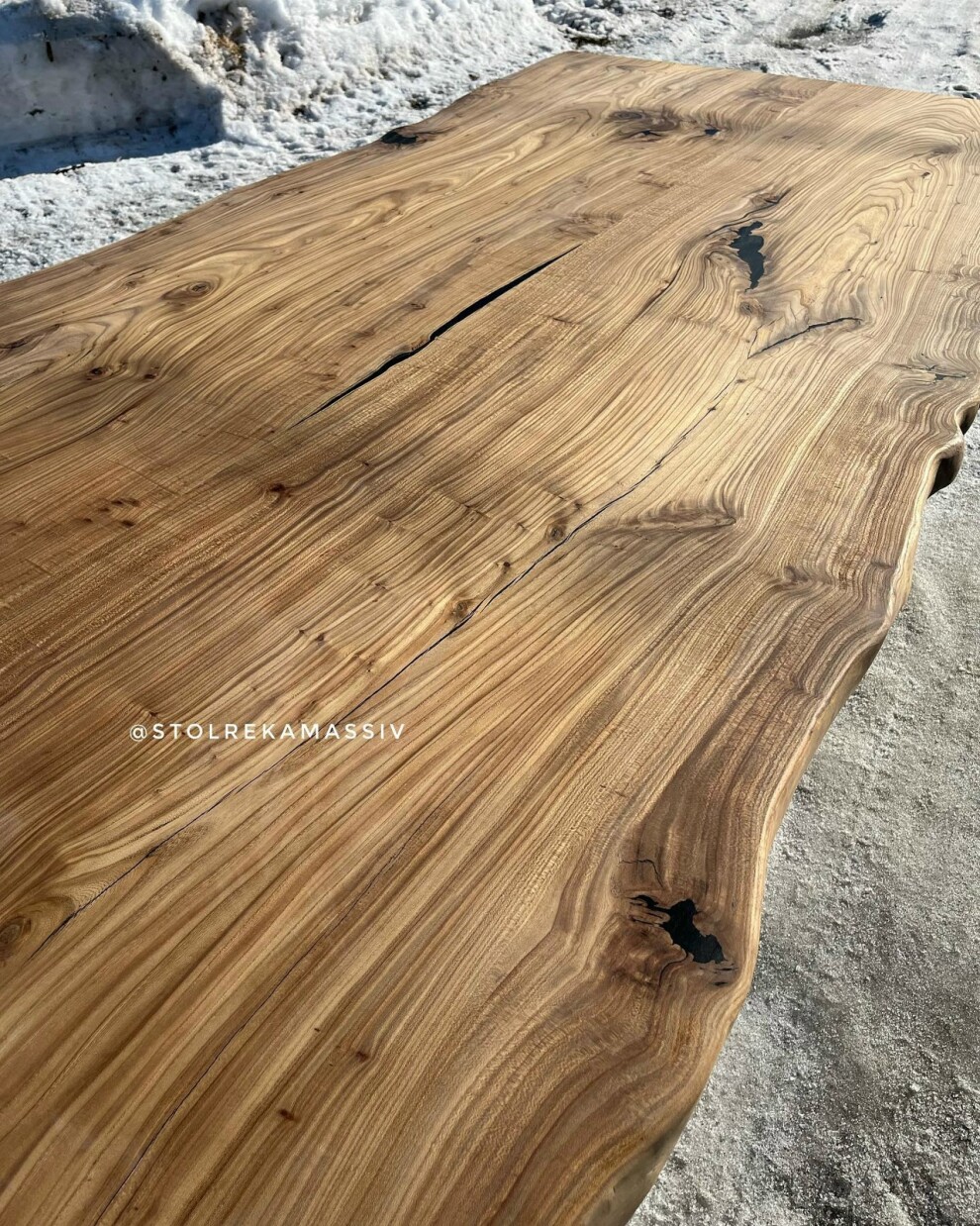 Изготовили для нашего клиента, неповторимый стол из массива карагача. Подстолье сделано из металлического профиля . Сучки и трещины искусно обработаны заливкой из эпоксидной смолы для получения идеально ровной поверхности столешницы и сохранения естественного рисунка древесины.