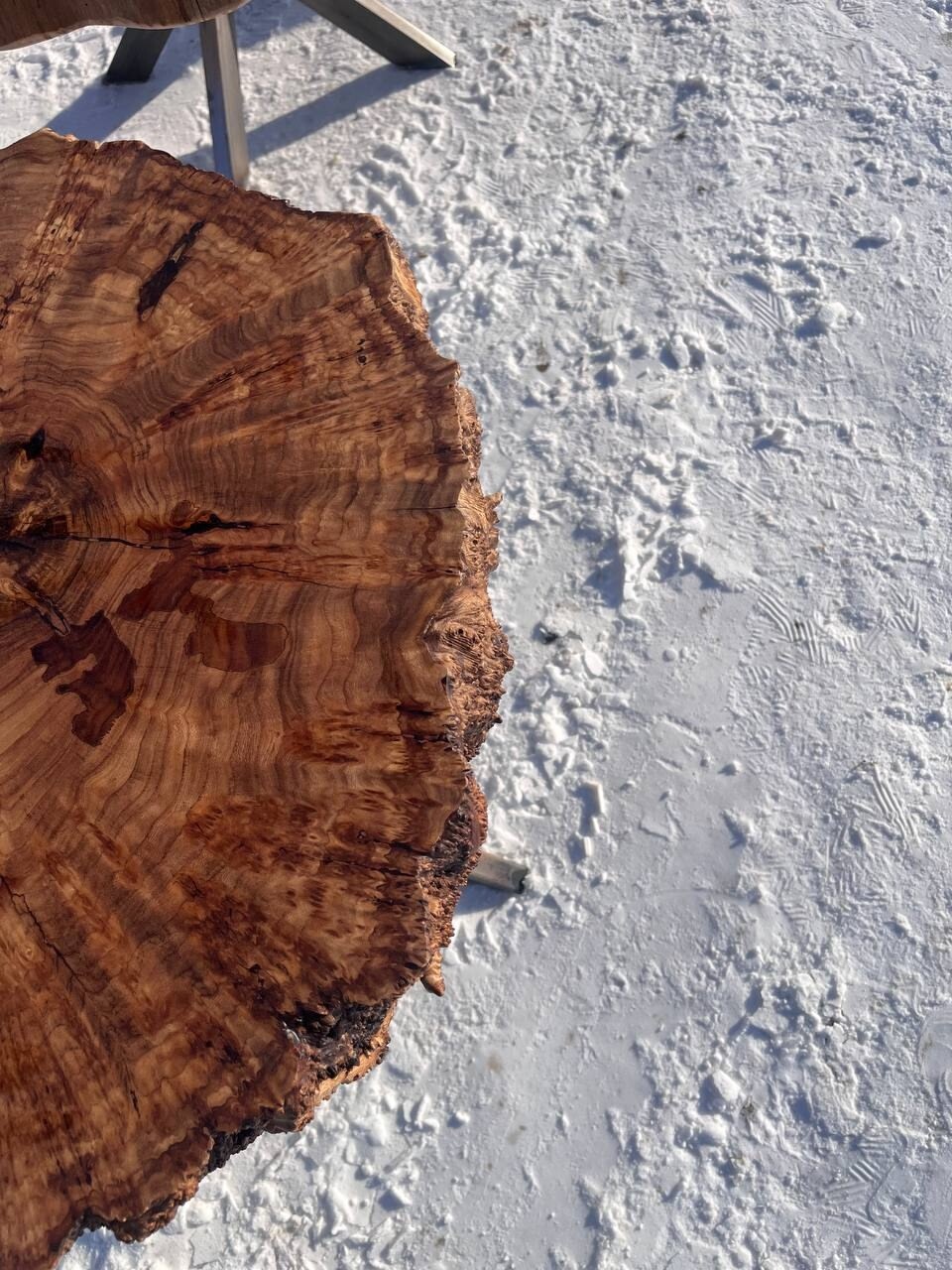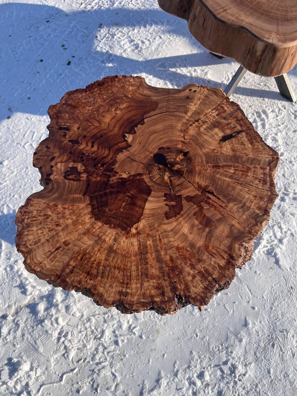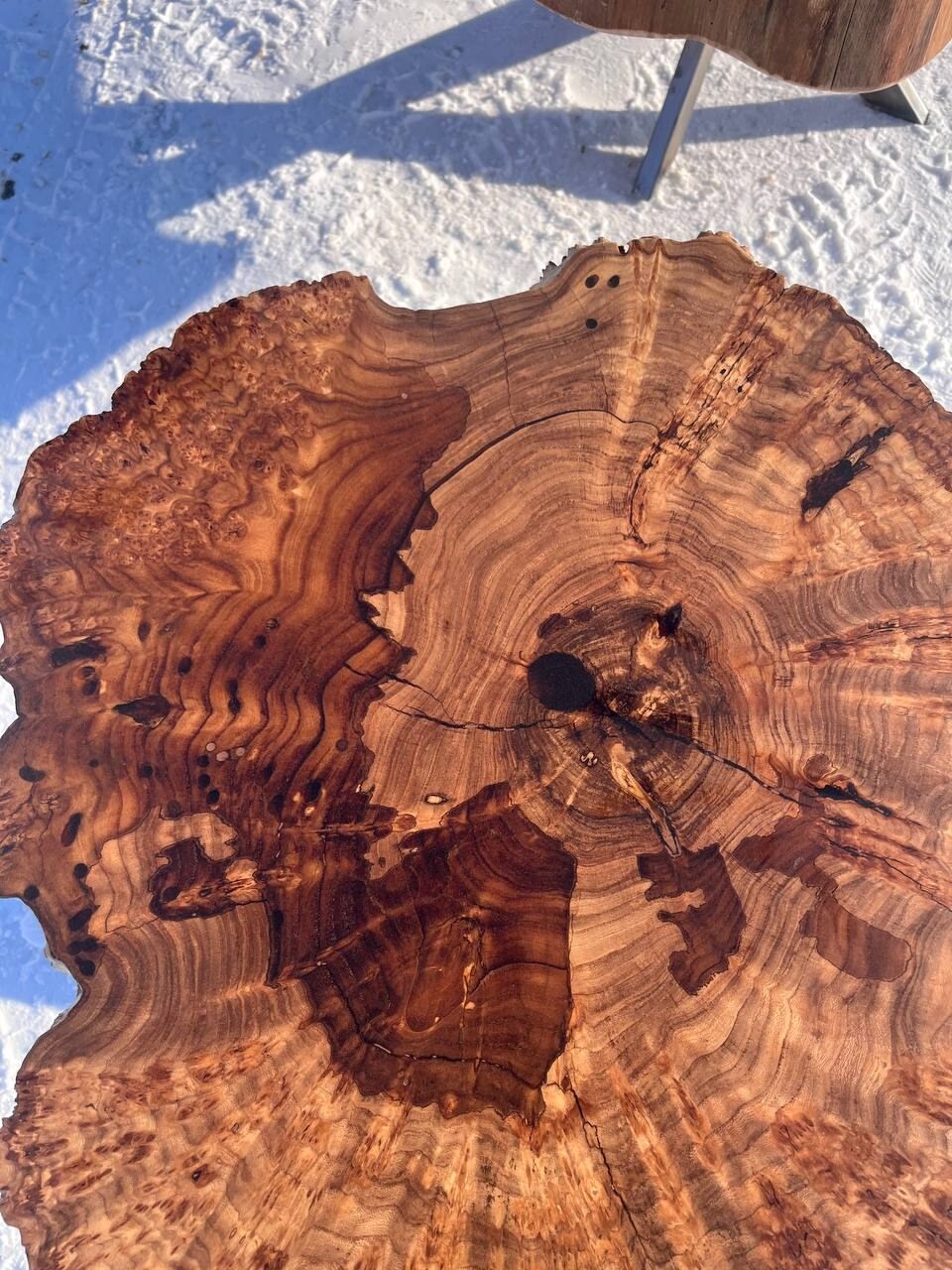Компактный и элегантный журнальный стол, созданный из цельного спила карагача, станет уютным акцентом в любом помещении.