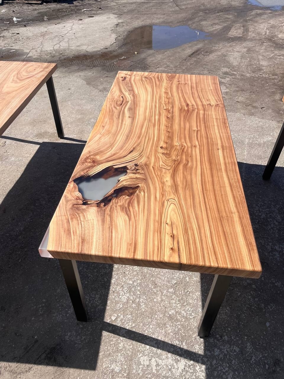 Мы начинаем заливать, дальше мы покрываем стол маслом или лаком. Затем, изготавливаем и красим ножки , после этого мы собираем вместе с ножками стол, фотографируем вам, если все хорошо ,вы отправляете вторую часть.