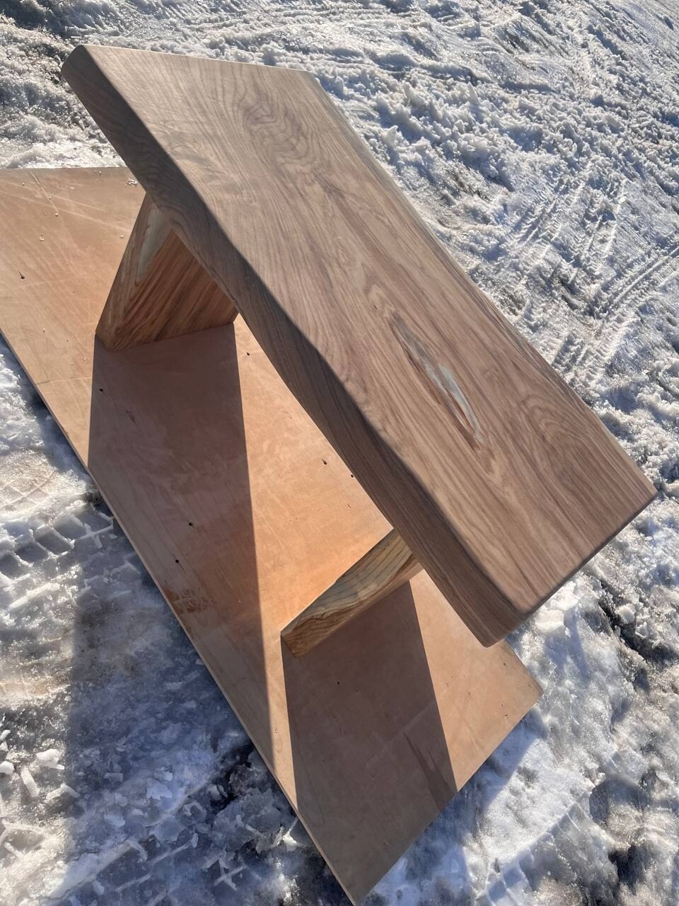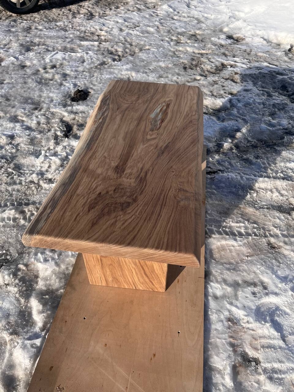 Журнальный стол из массива дуба на деревянном основании № 81