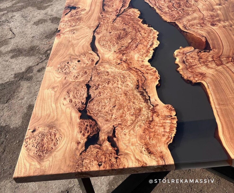Стол из массива капового карагача и эпоксидной смолы № 2