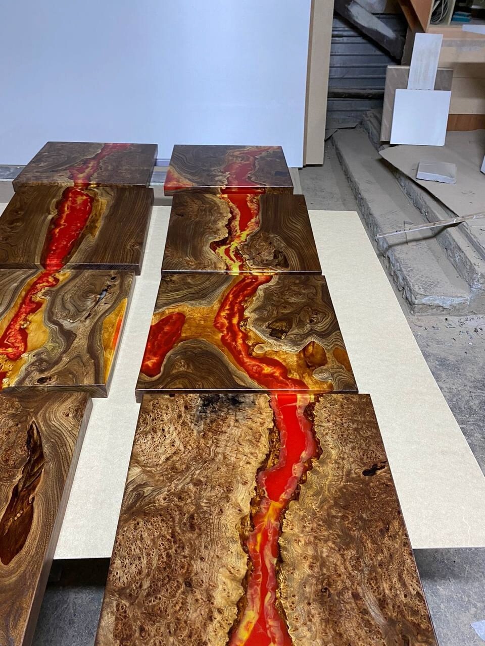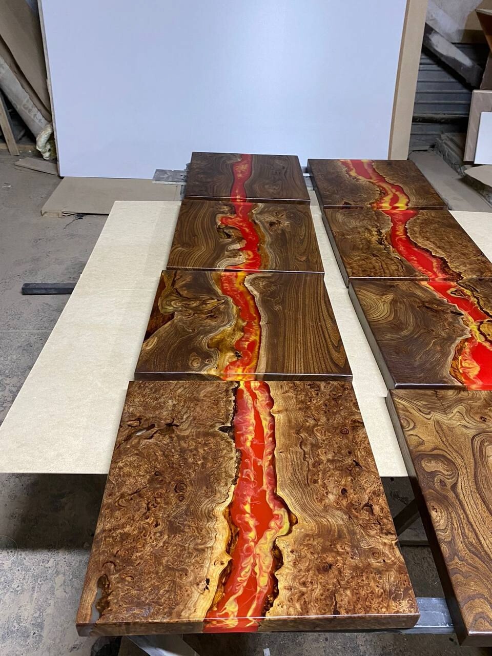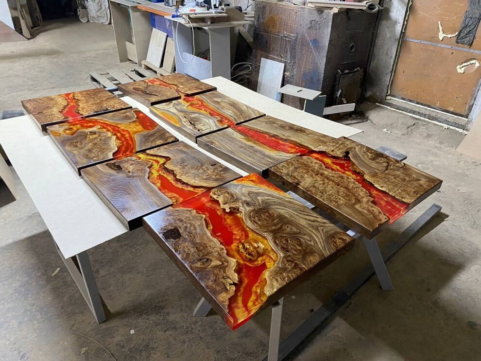 Столешницы в кафе из массива карагача и эпоксидной смолы № 22