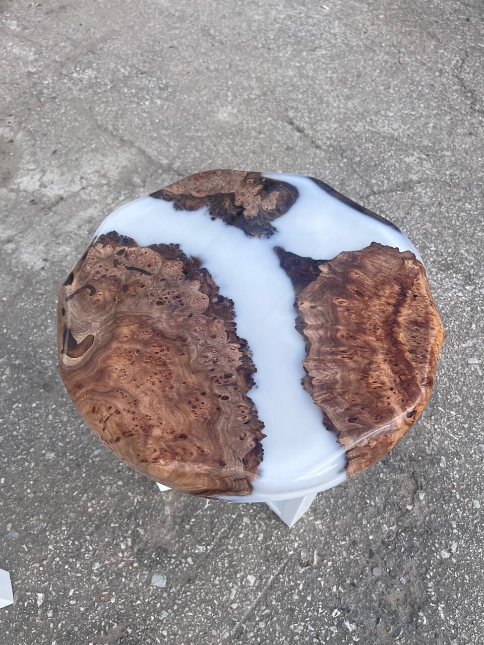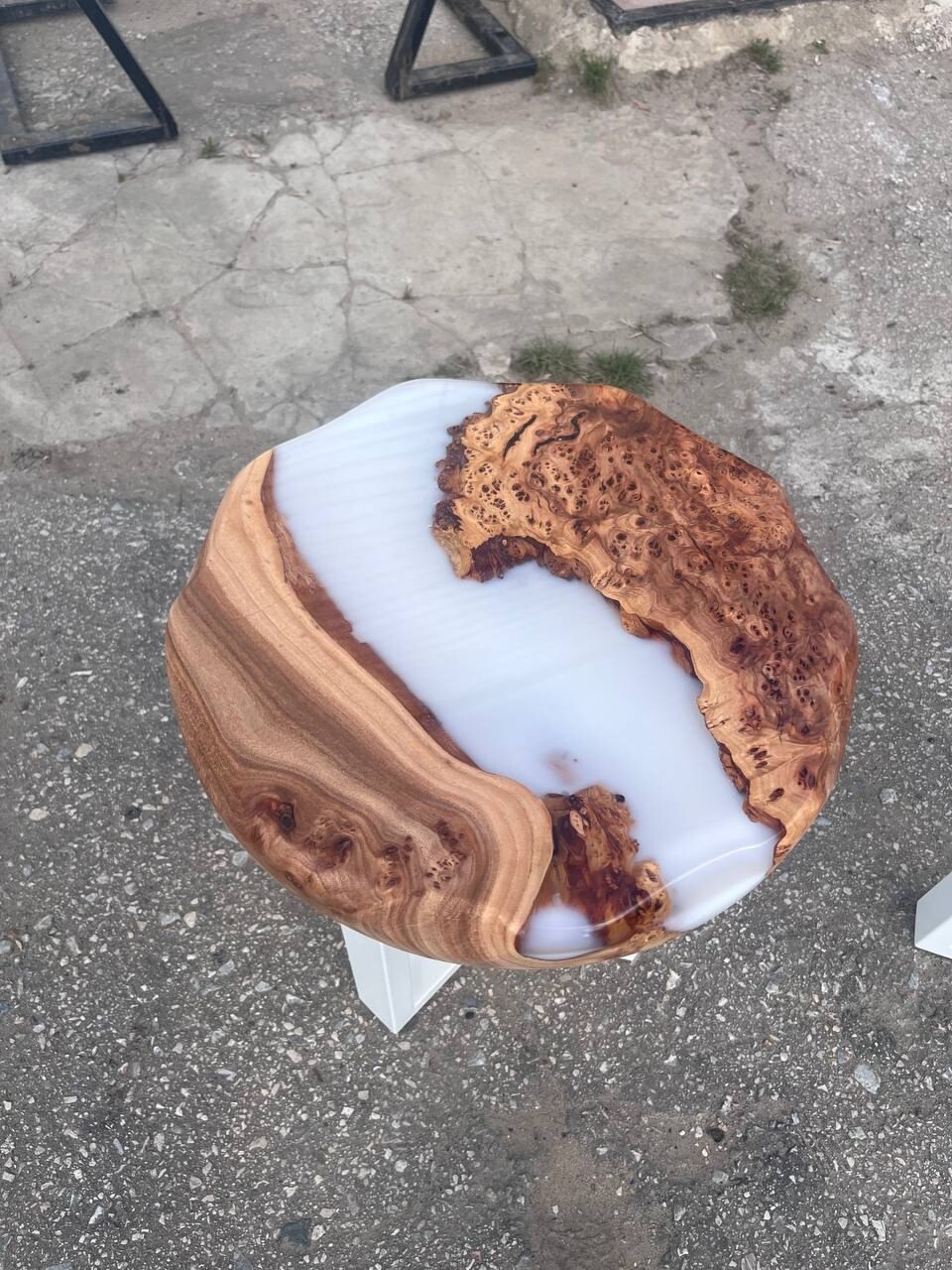 Представляем компактный журнальный стол, где природная красота карагача встречается с элегантной заливкой эпоксидной смолы. Этот миниатюрный шедевр станет идеальным акцентом в вашем интерьере!