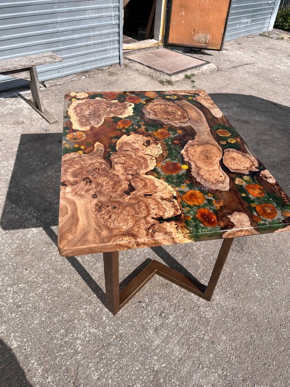Представляем вам уникальное творение ручной работы - стол, в котором оживает целая экосистема! В прозрачной эпоксидной смоле застыли настоящие сокровища леса: нежные сухоцветы, изумрудный мох и причудливые грибочки.