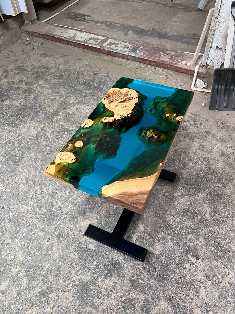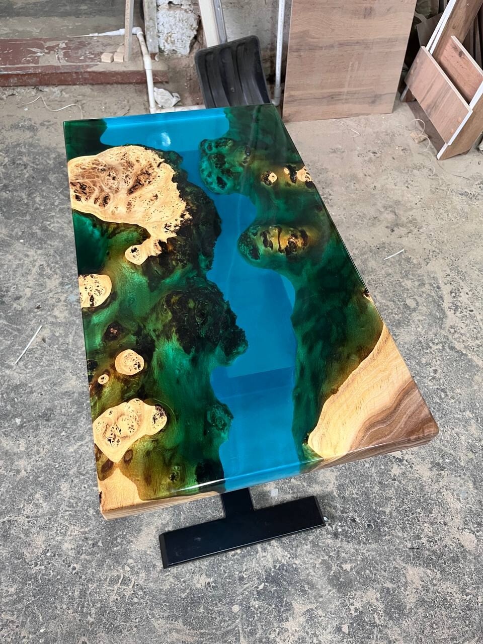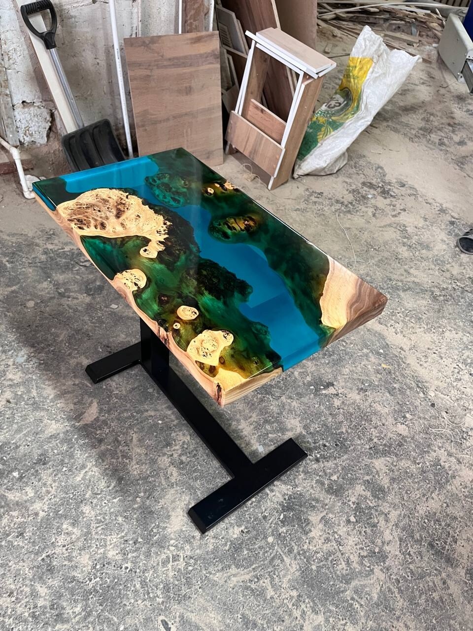 Мы начинаем заливать, дальше мы покрываем стол маслом или лаком. Затем, изготавливаем и красим ножки , после этого мы собираем вместе с ножками стол, фотографируем вам, если все хорошо ,вы отправляете вторую часть.
