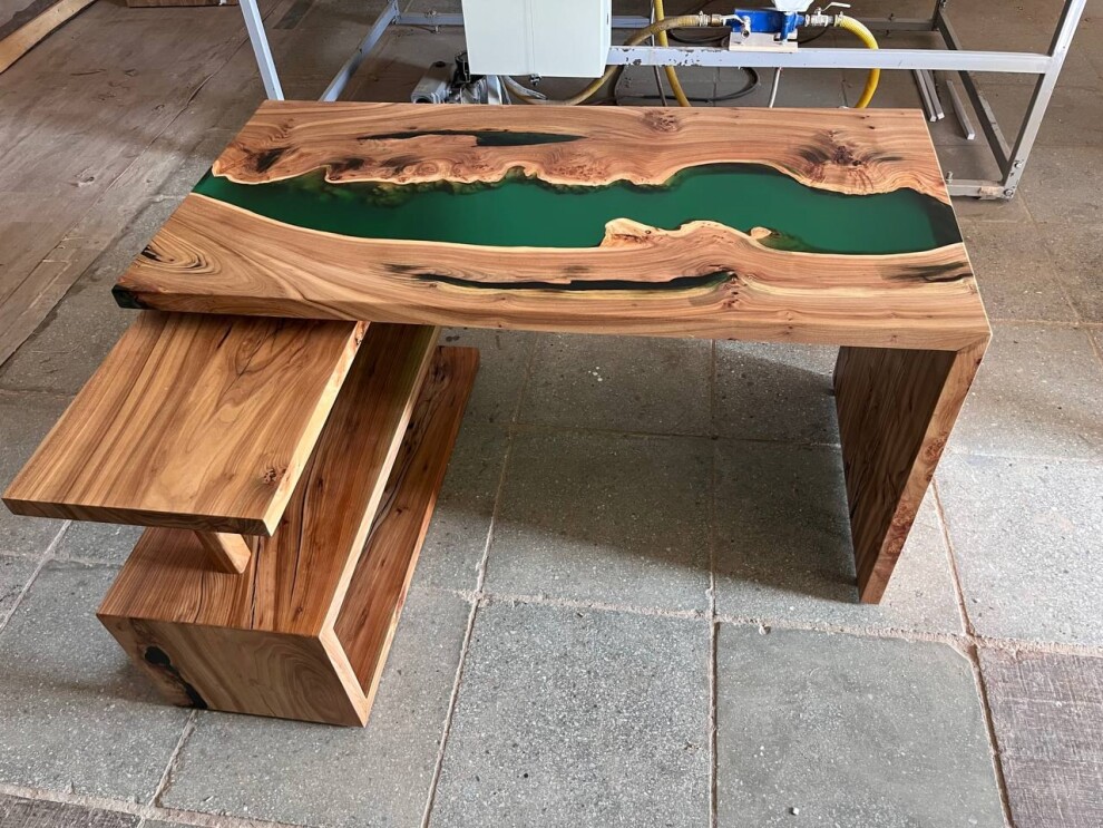 Представляем вашему вниманию стильный рабочий стол из массива карагача с эффектом “река” - идеальное сочетание функциональности и искусства!