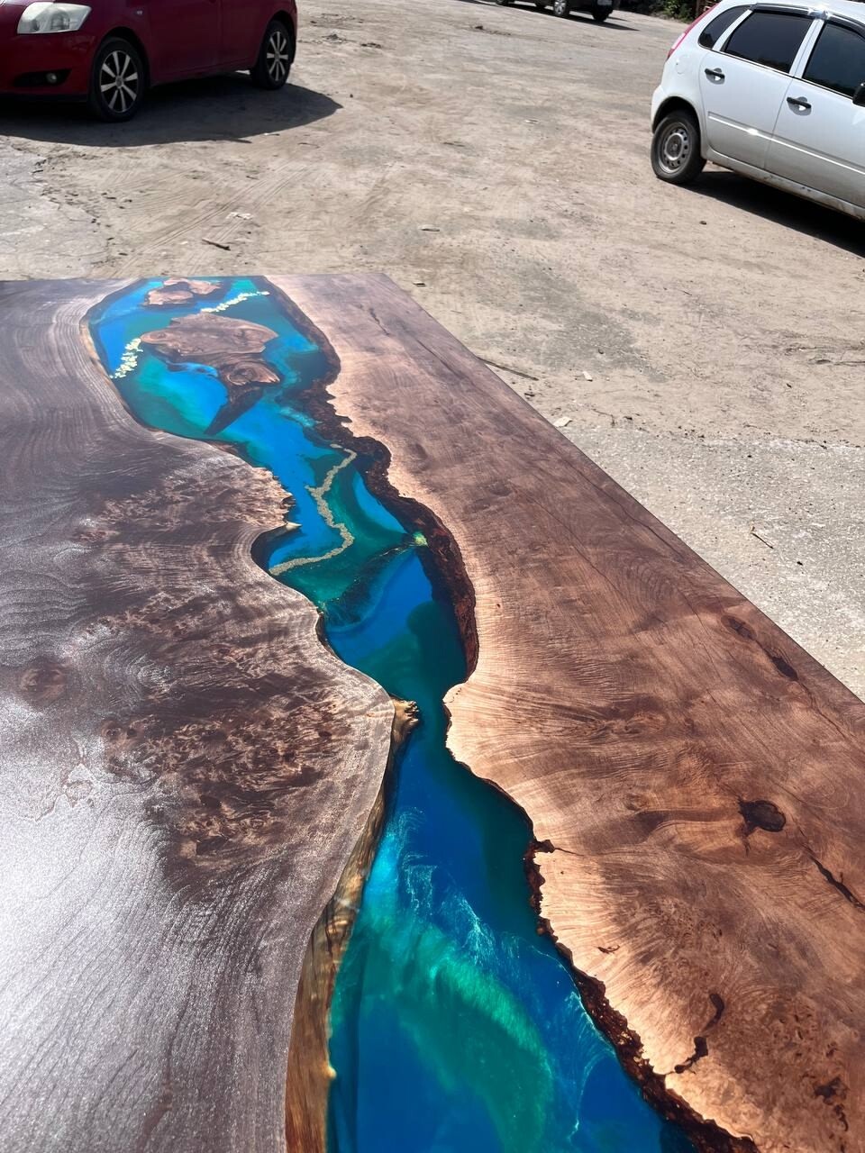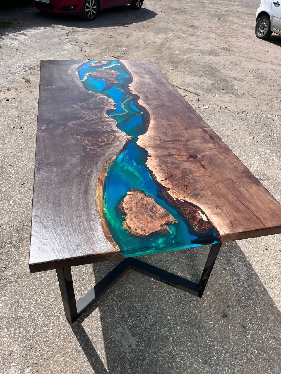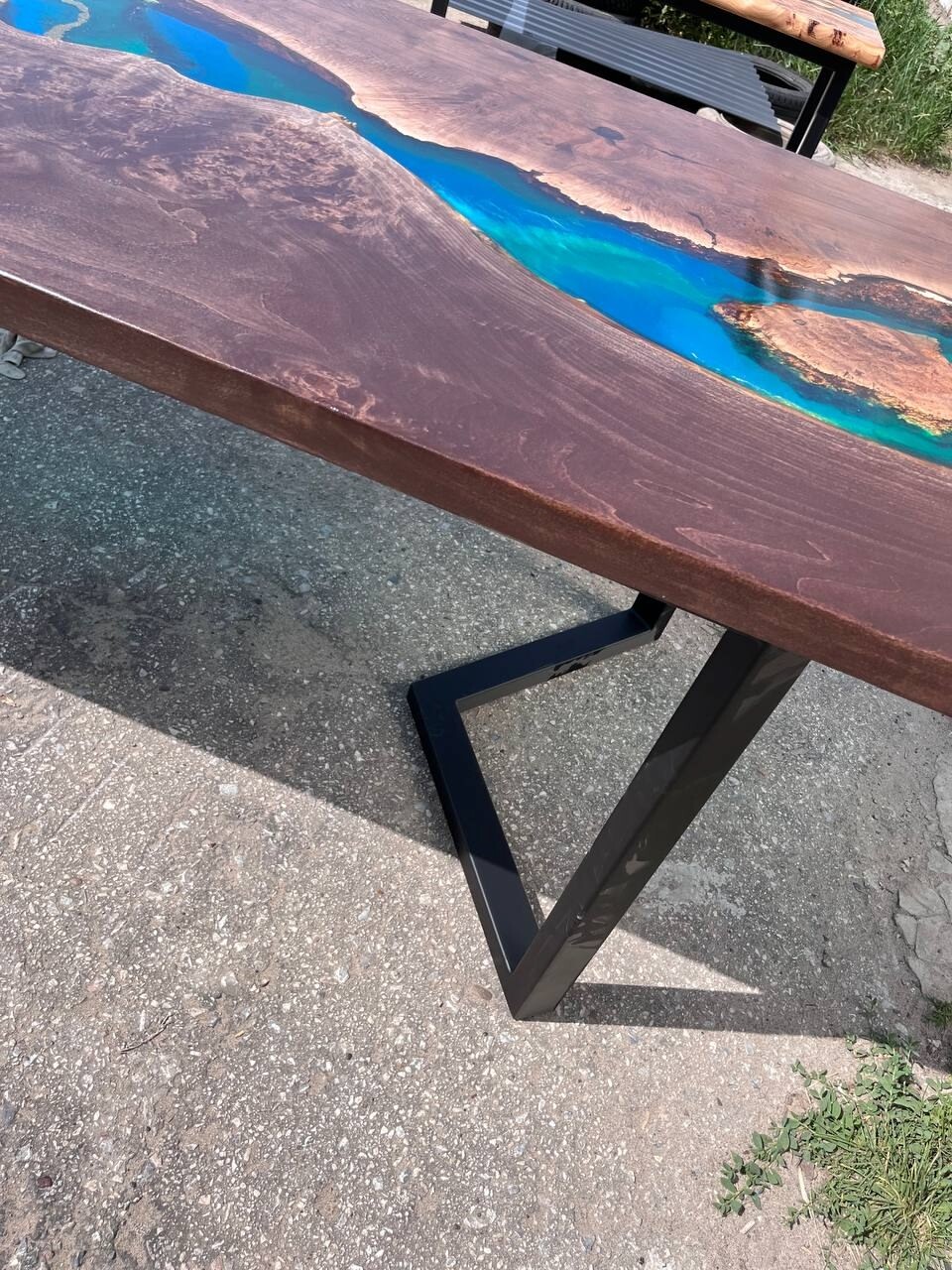 Представляем вашему вниманию величественный стол из массива ольхи с эффектом “река” - настоящий шедевр мебельного искусства!