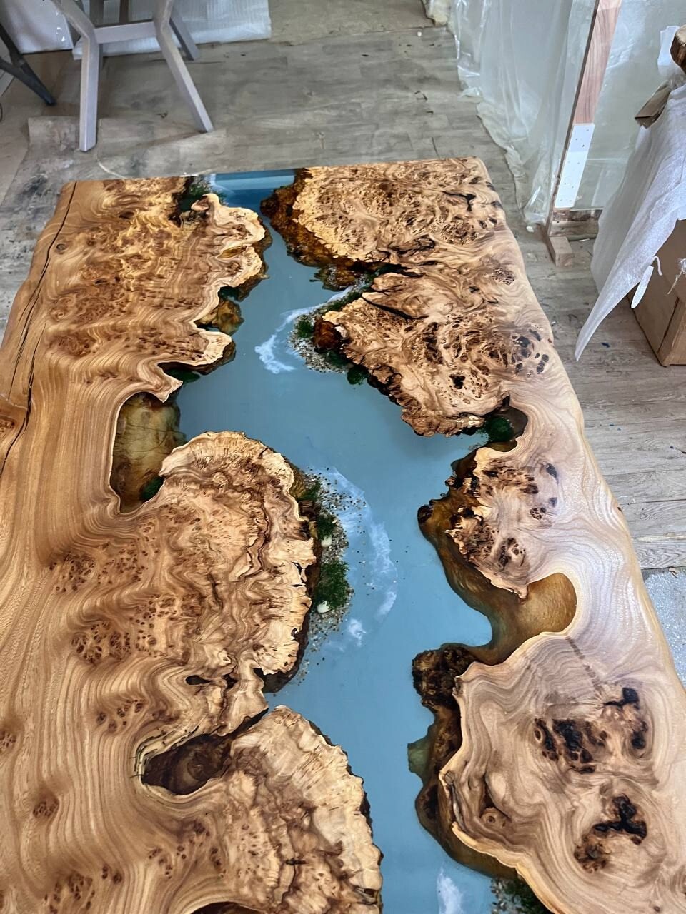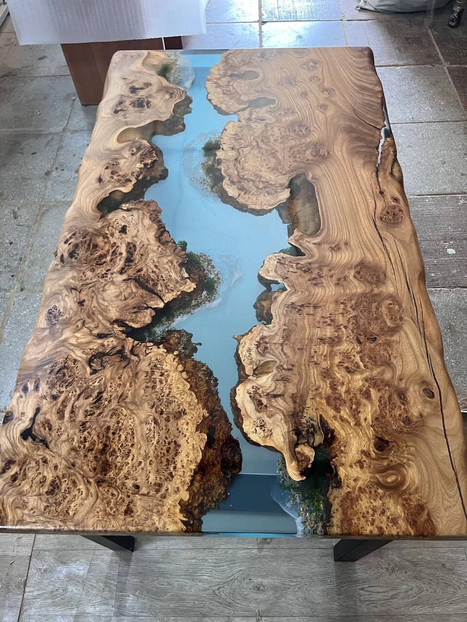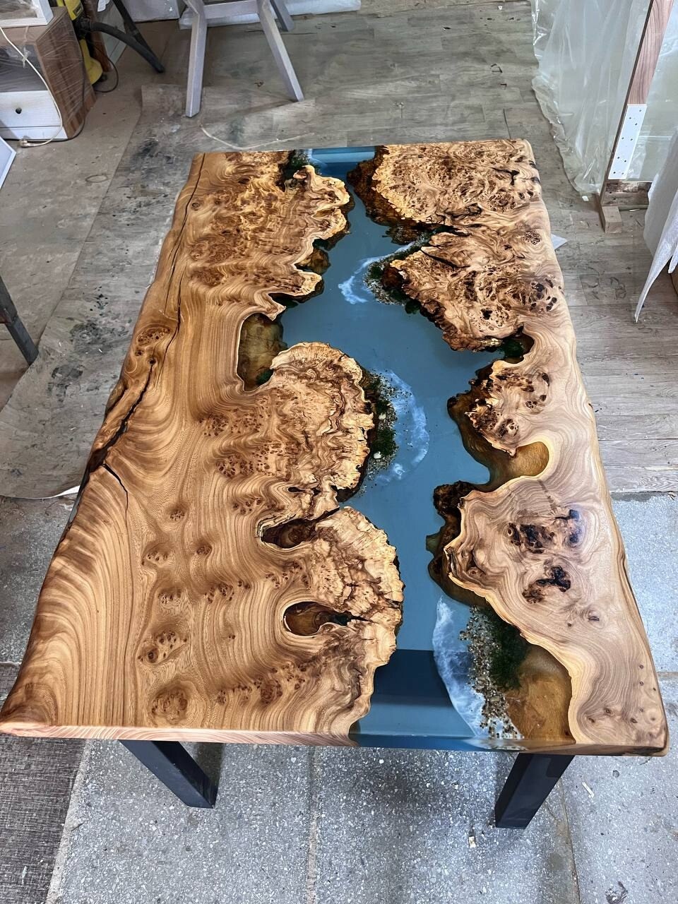 Представляем вашему вниманию изысканный стол из массива карагача с эпоксидной смолой!