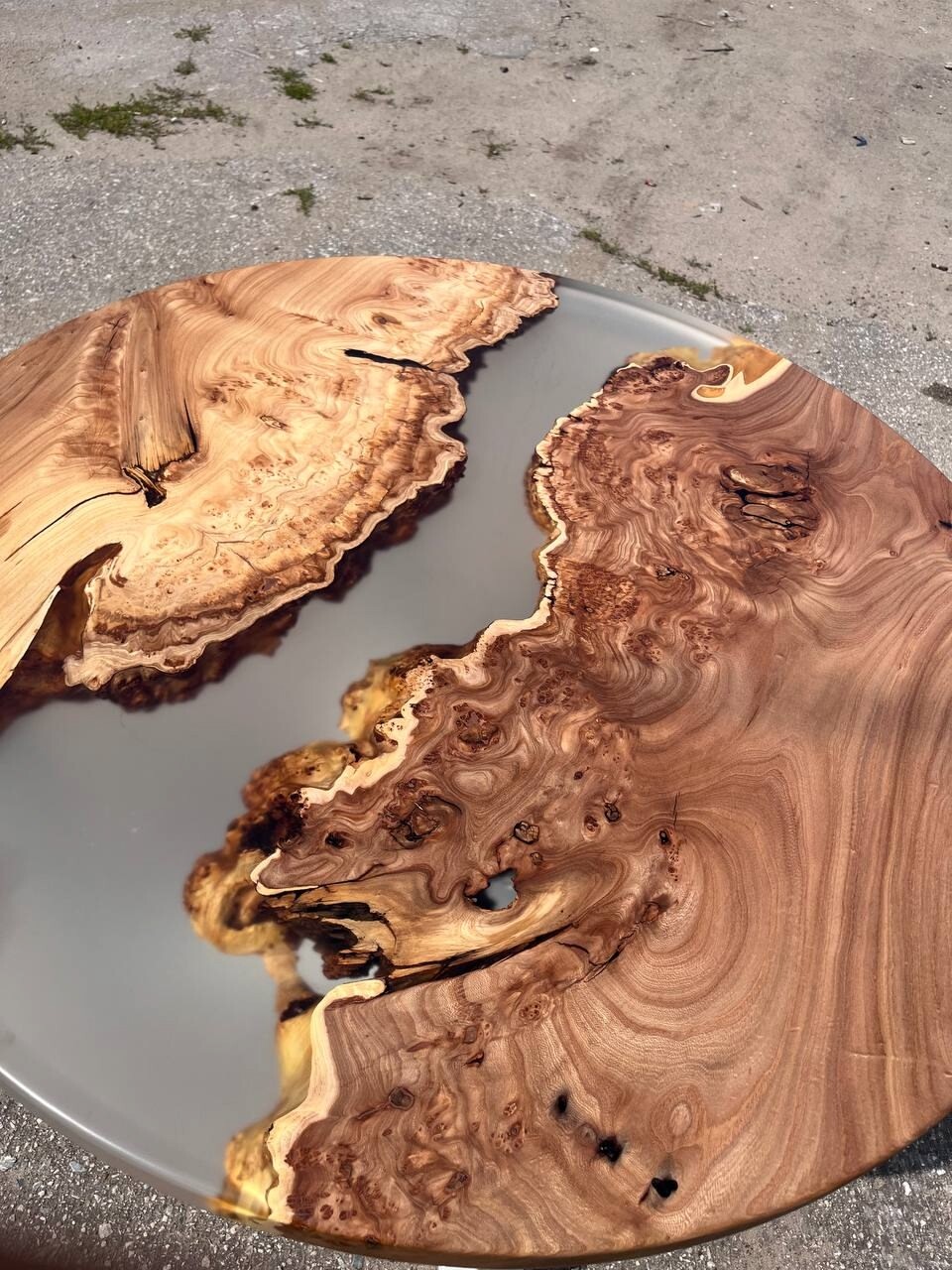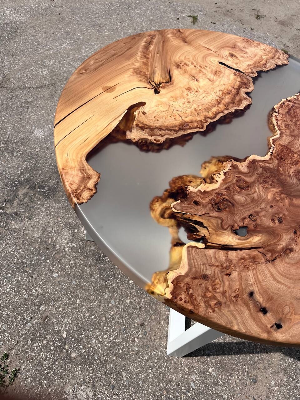 Круглый стол из массива карагача и эпоксидной смолы № 52