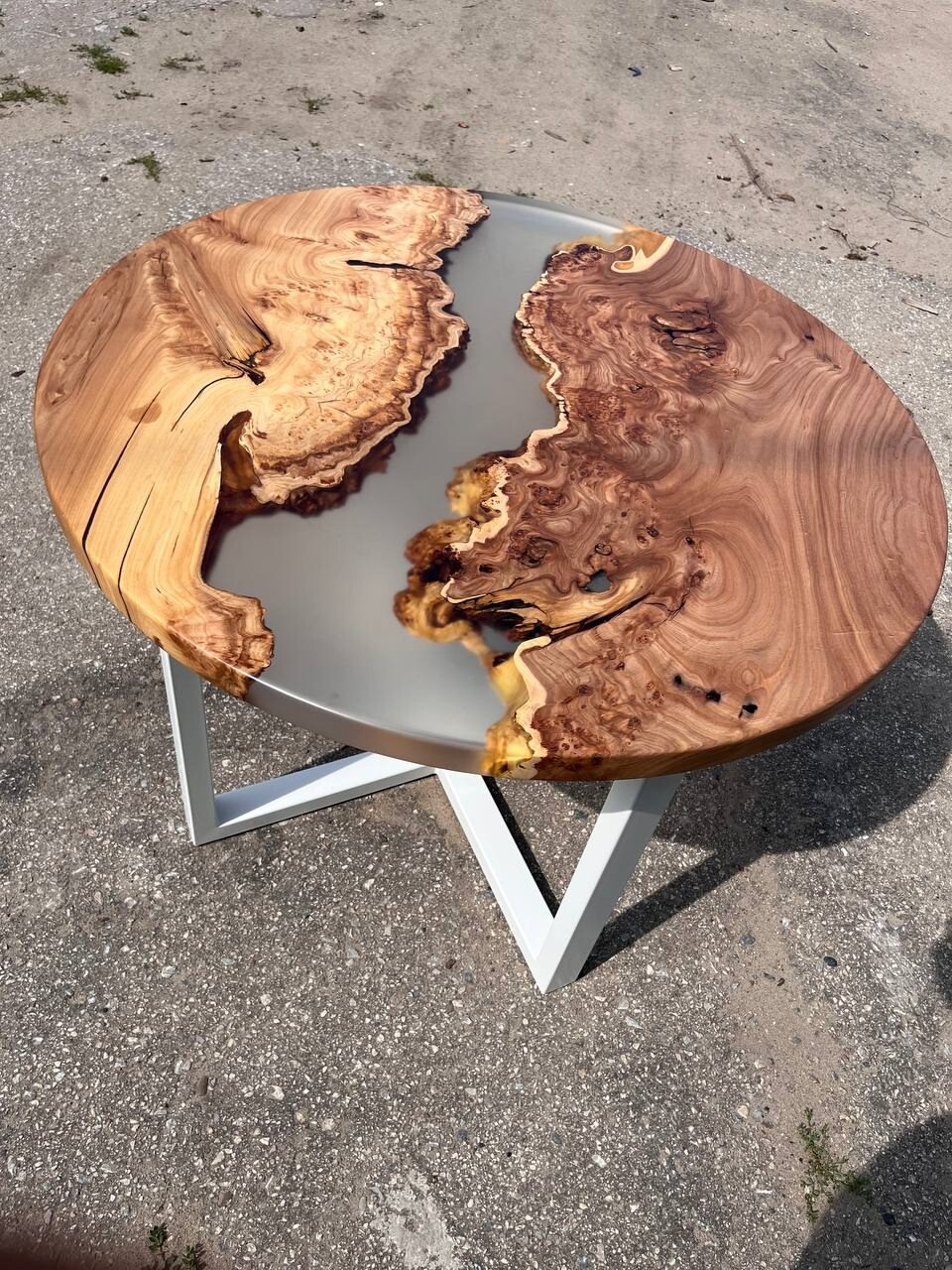 🪑 Круглый стол из массива карагача с эпоксидной смолой - роскошь в вашем интерьере!