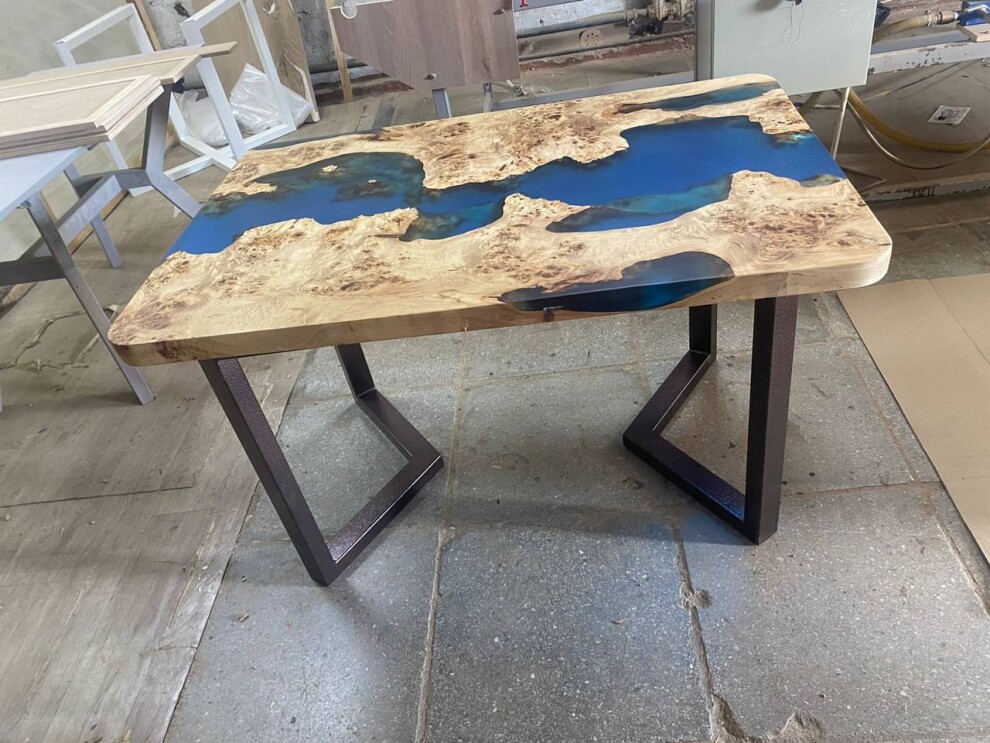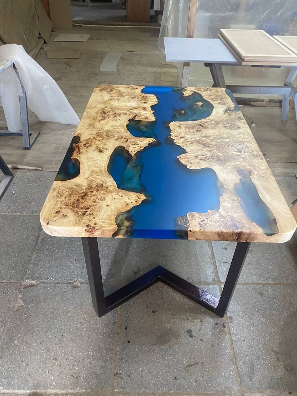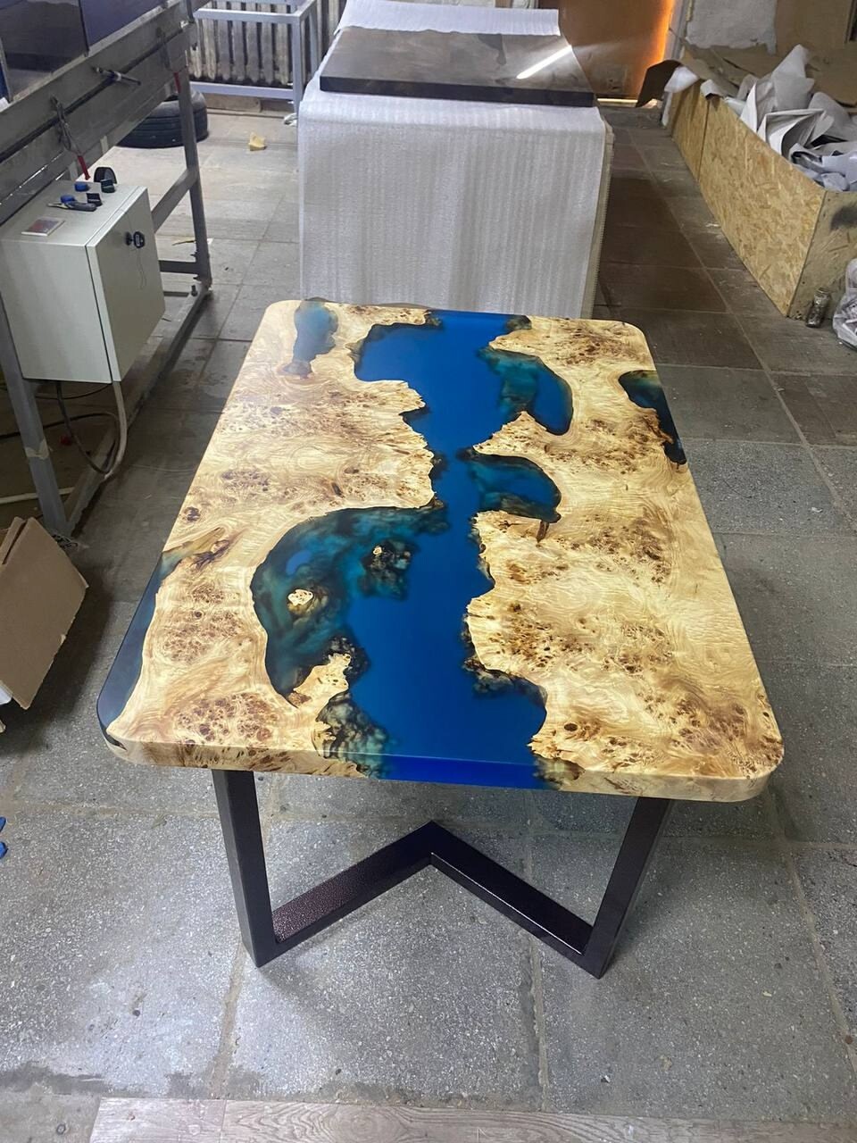 🪑 Стильный стол из массива тополя с эпоксидной смолой!