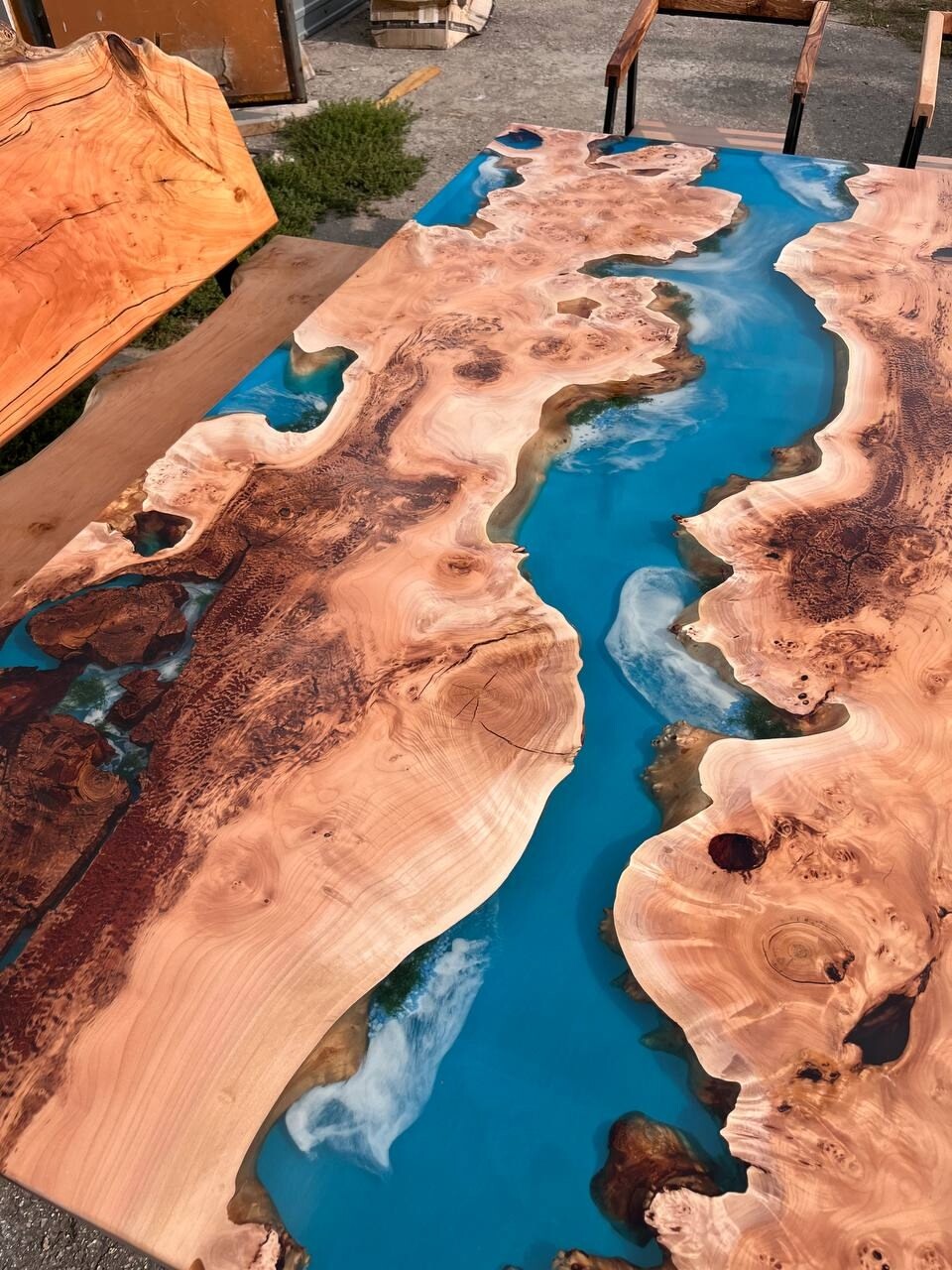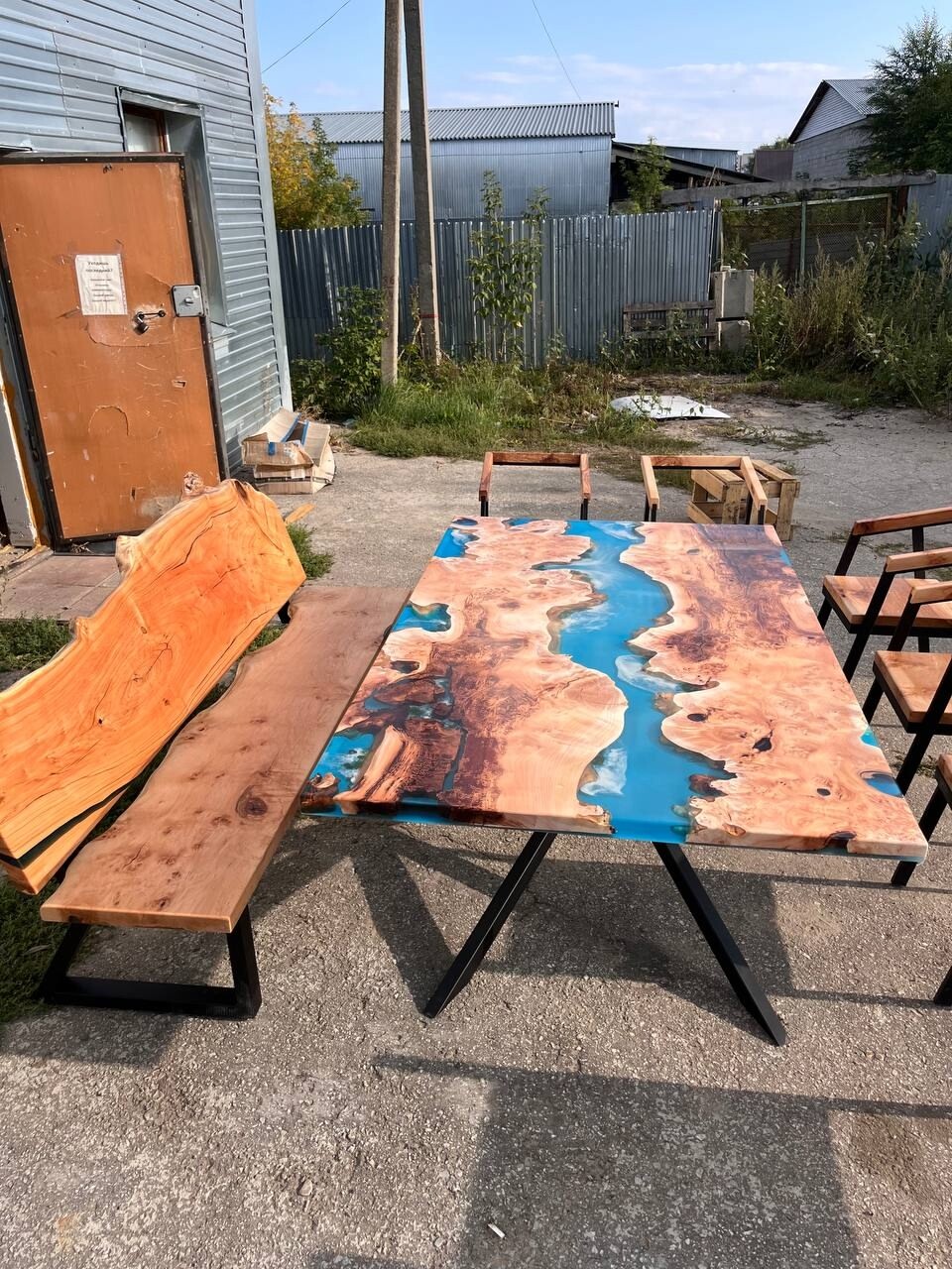 Мы начинаем заливать, дальше мы покрываем стол маслом или лаком. Затем, изготавливаем и красим ножки , после этого мы собираем вместе с ножками стол, фотографируем вам, если все хорошо ,вы отправляете вторую часть.
