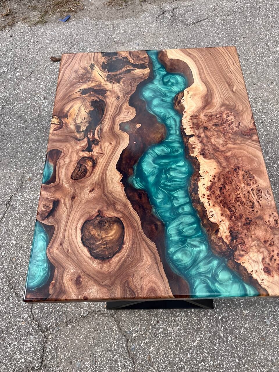 Мы начинаем заливать, дальше мы покрываем стол маслом или лаком. Затем, изготавливаем и красим ножки , после этого мы собираем вместе с ножками стол, фотографируем вам, если все хорошо ,вы отправляете вторую часть.