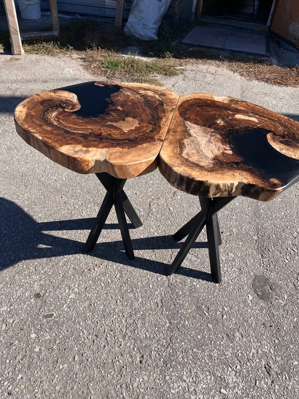 Стильные журнальные столики из натурального спила ореха с эпоксидной смолой - идеальное дополнение для вашего интерьера!