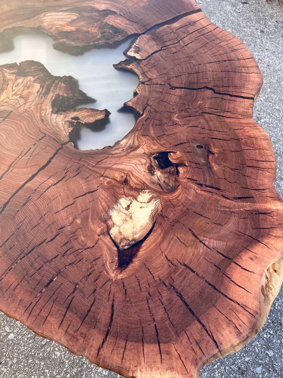 Стильное решение для современного интерьера - журнальный стол из натурального спила карагача с элементами эпоксидной смолы!