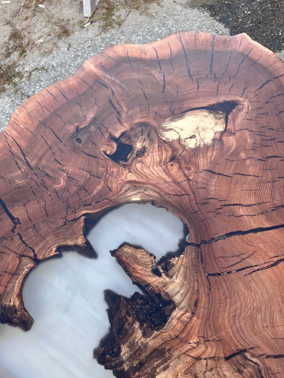 СТОЛ ИЗ СПИЛА КАРАГАЧА С ЭПОКСИДНОЙ СМОЛОЙ | 120х65х45 см
