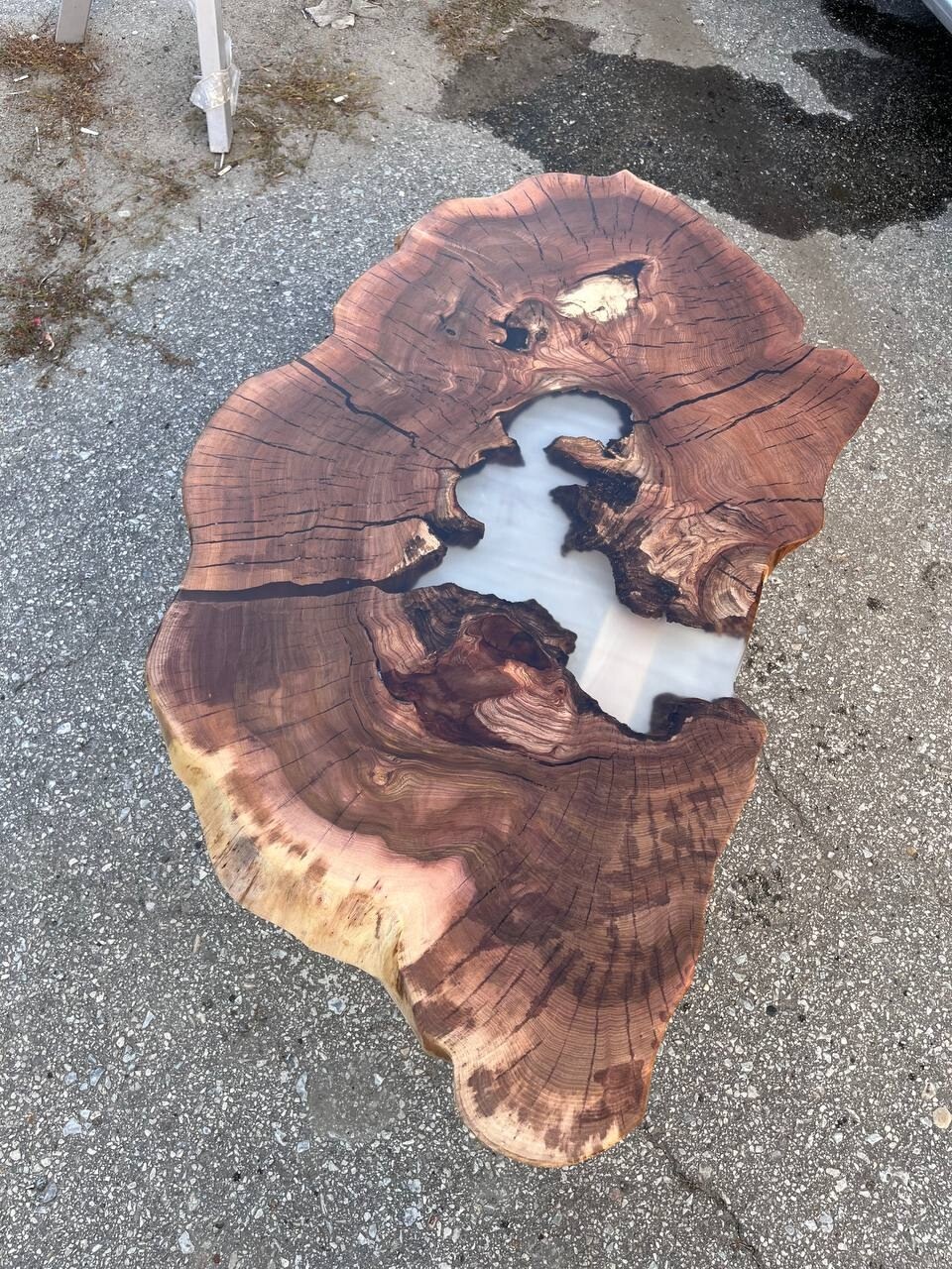 Стильное решение для современного интерьера - журнальный стол из натурального спила карагача с элементами эпоксидной смолы!