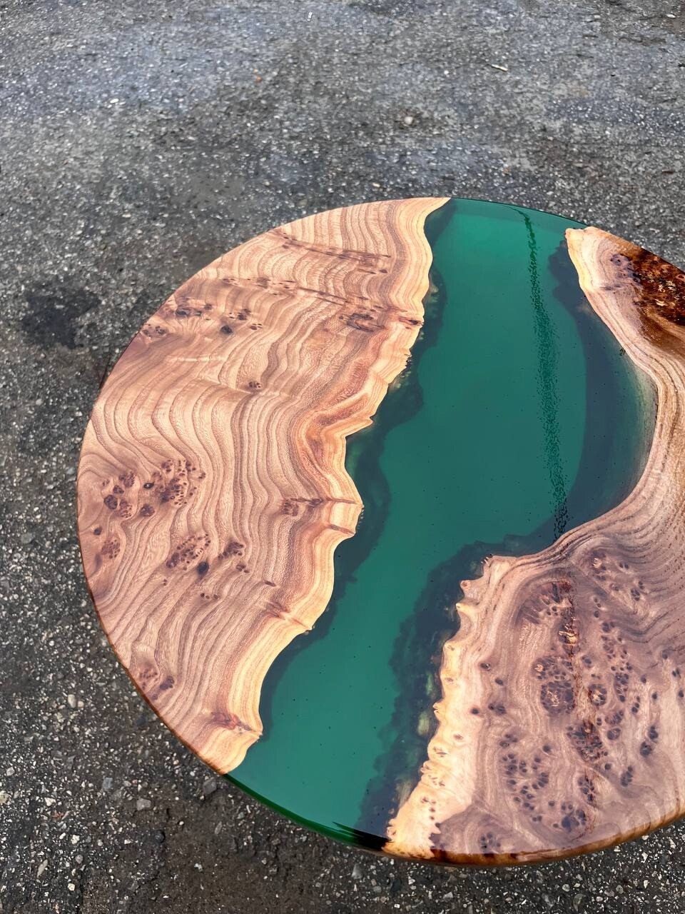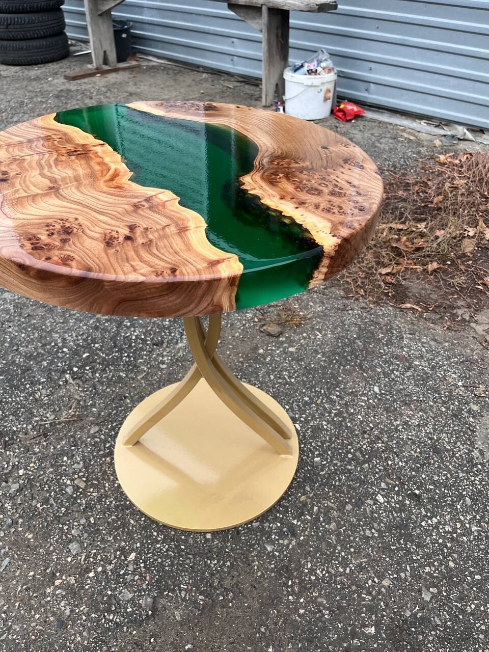 Мы начинаем заливать, дальше мы покрываем стол маслом или лаком. Затем, изготавливаем и красим ножки , после этого мы собираем вместе с ножками стол, фотографируем вам, если все хорошо ,вы отправляете вторую часть.
