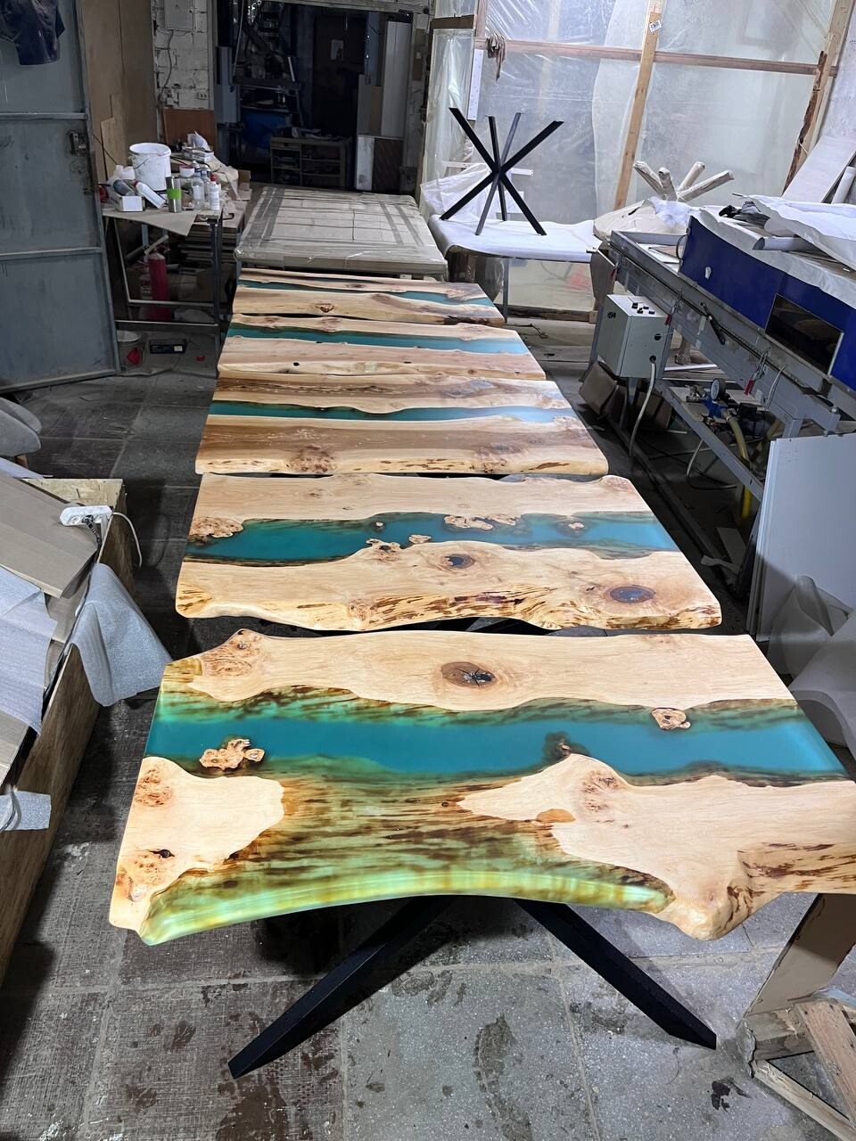 Мы начинаем заливать, дальше мы покрываем стол маслом или лаком. Затем, изготавливаем и красим ножки , после этого мы собираем вместе с ножками стол, фотографируем вам, если все хорошо ,вы отправляете вторую часть.