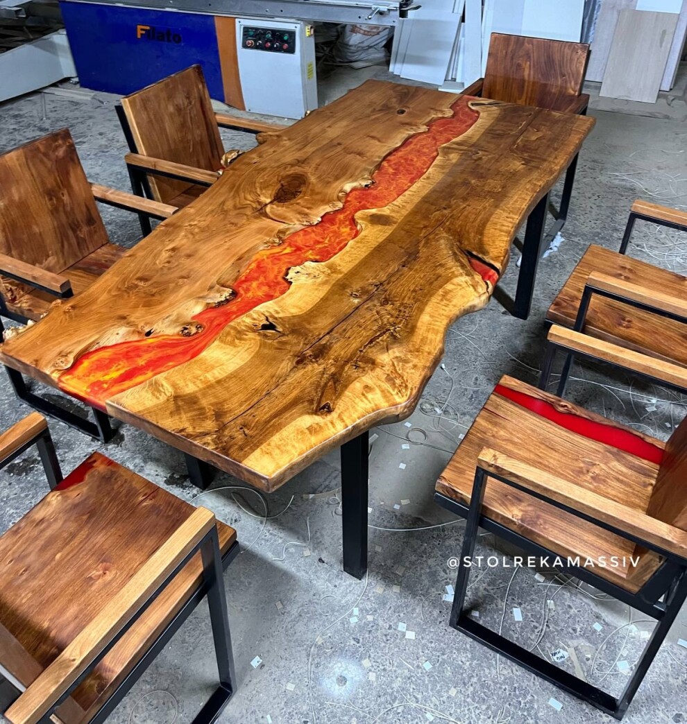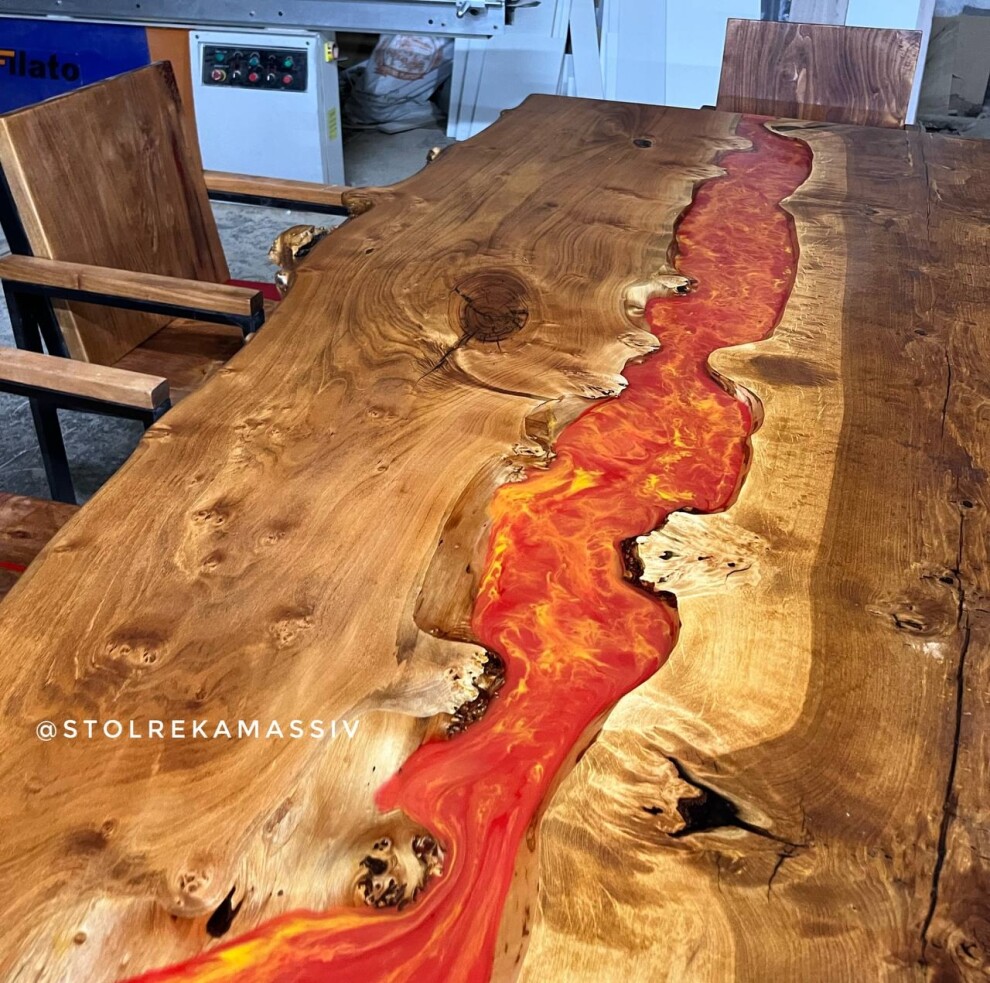 Мы начинаем заливать, дальше мы покрываем стол маслом или лаком. Затем, изготавливаем и красим ножки , после этого мы собираем вместе с ножками стол, фотографируем вам, если все хорошо ,вы отправляете вторую часть.