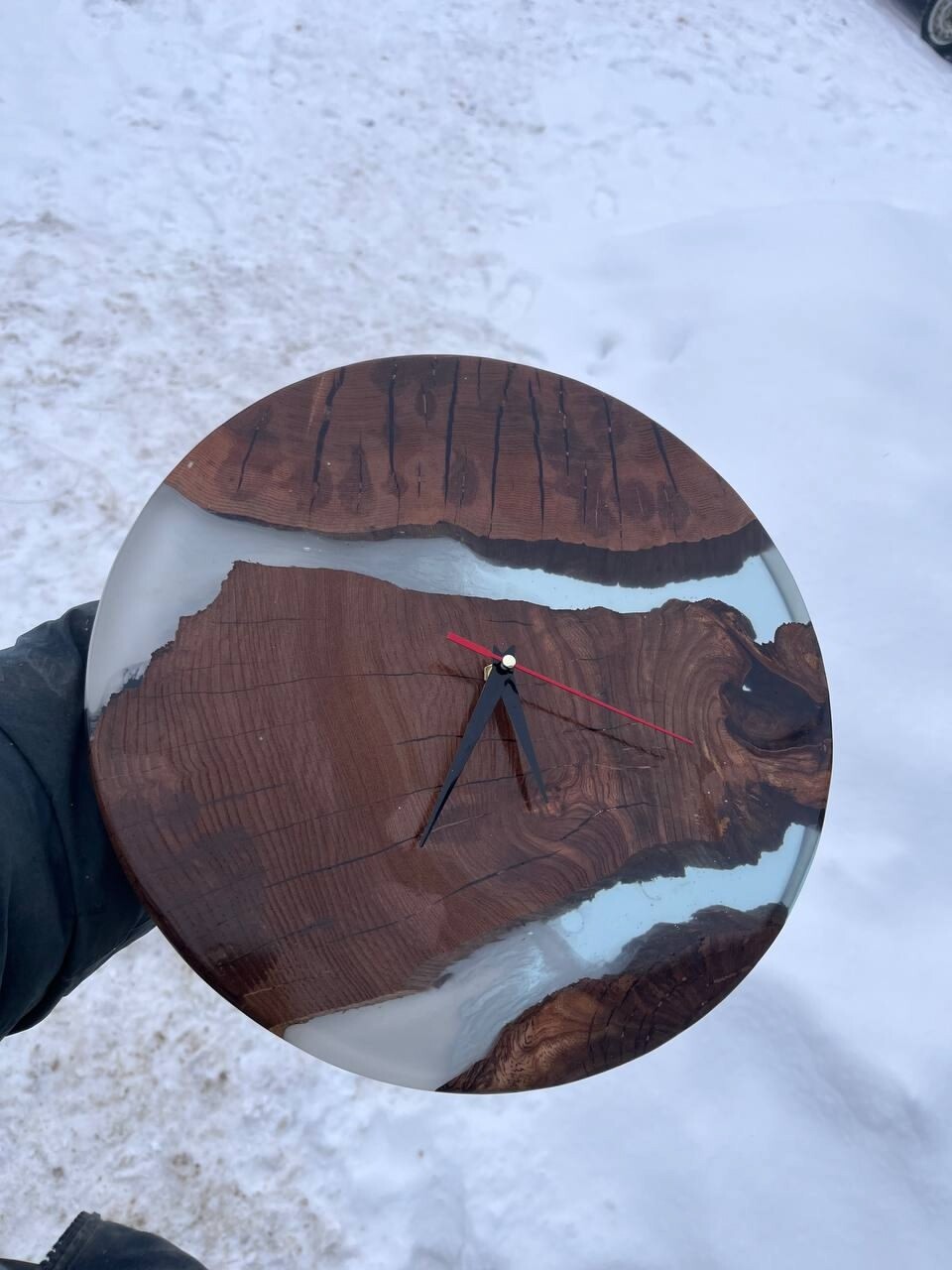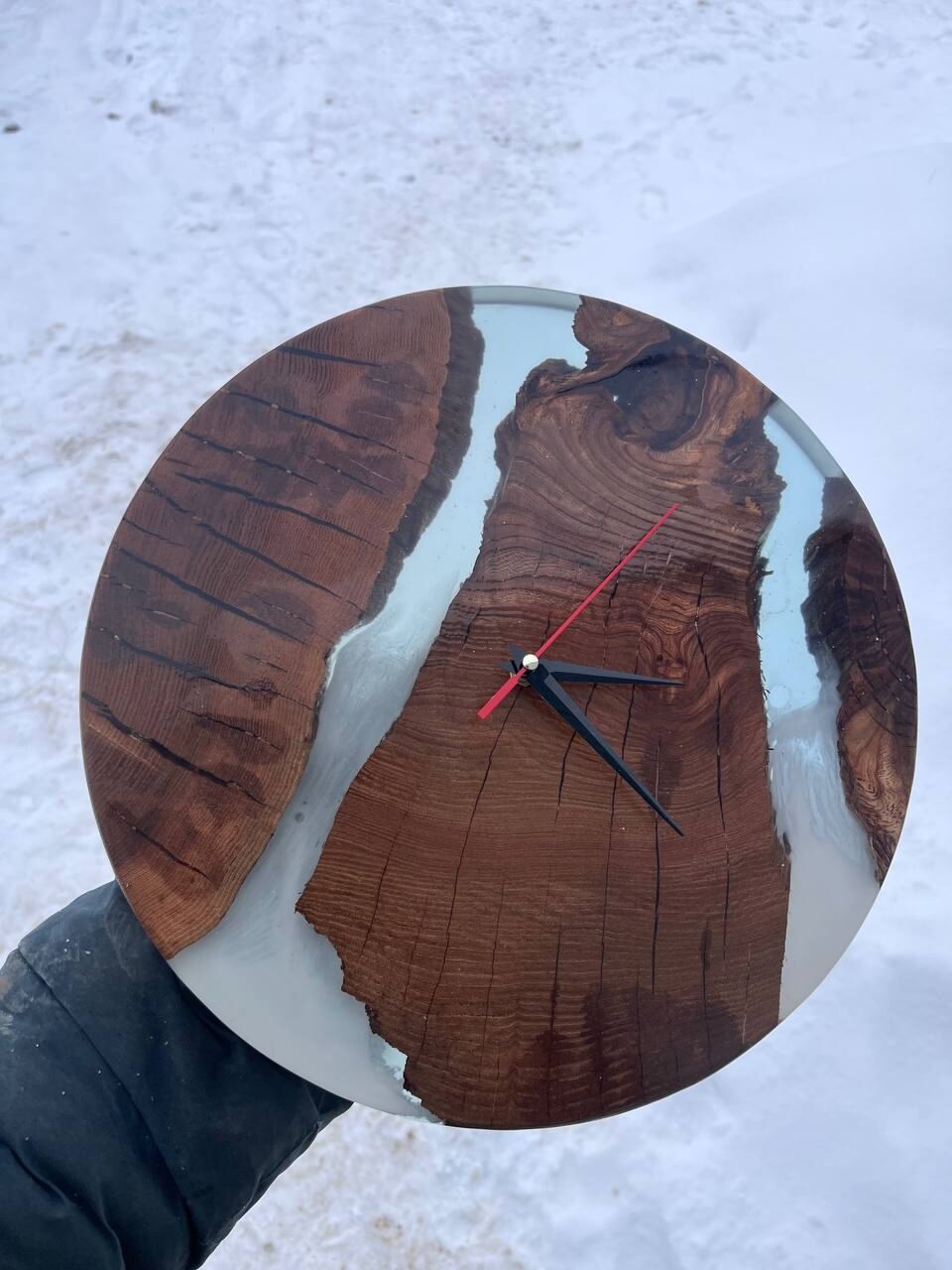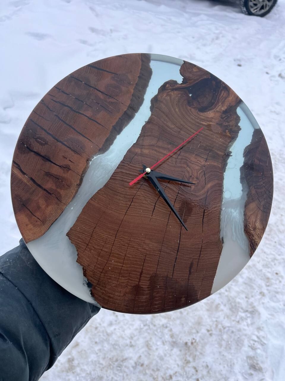 Часы из массива карагача и смолы № 1