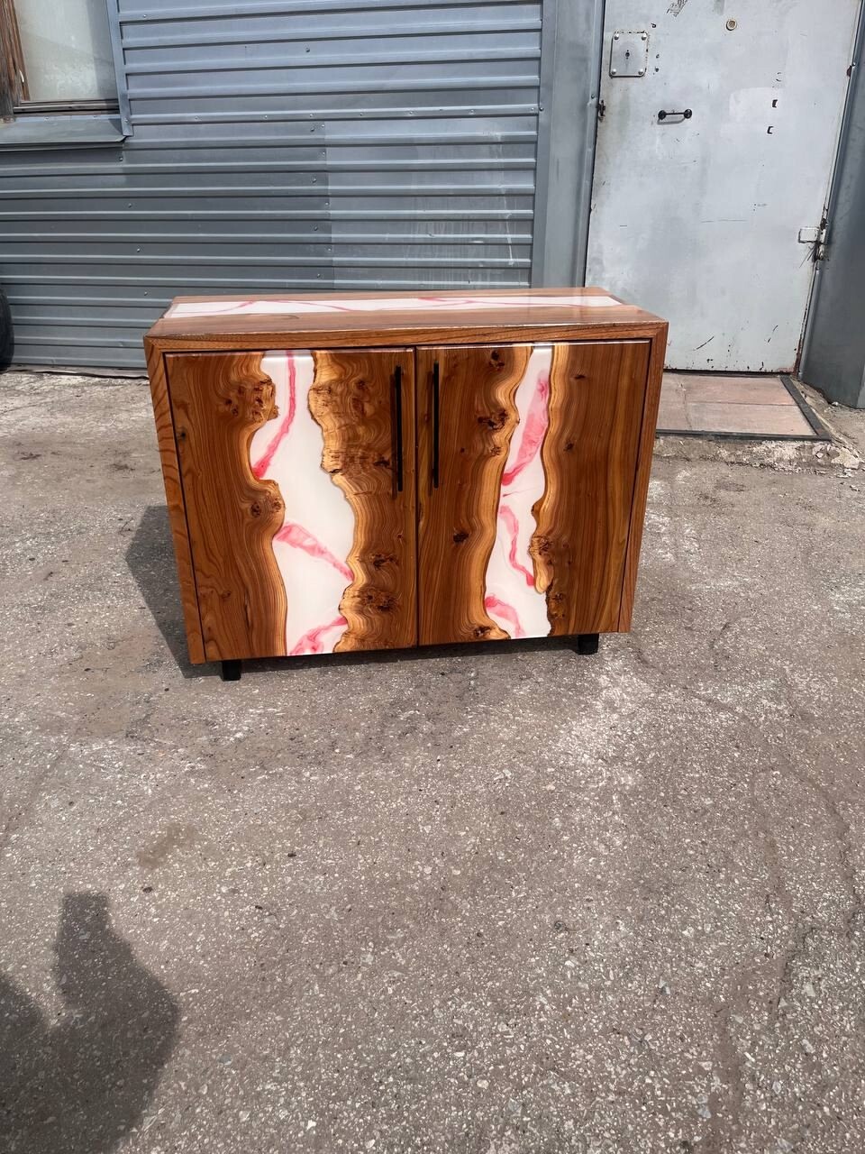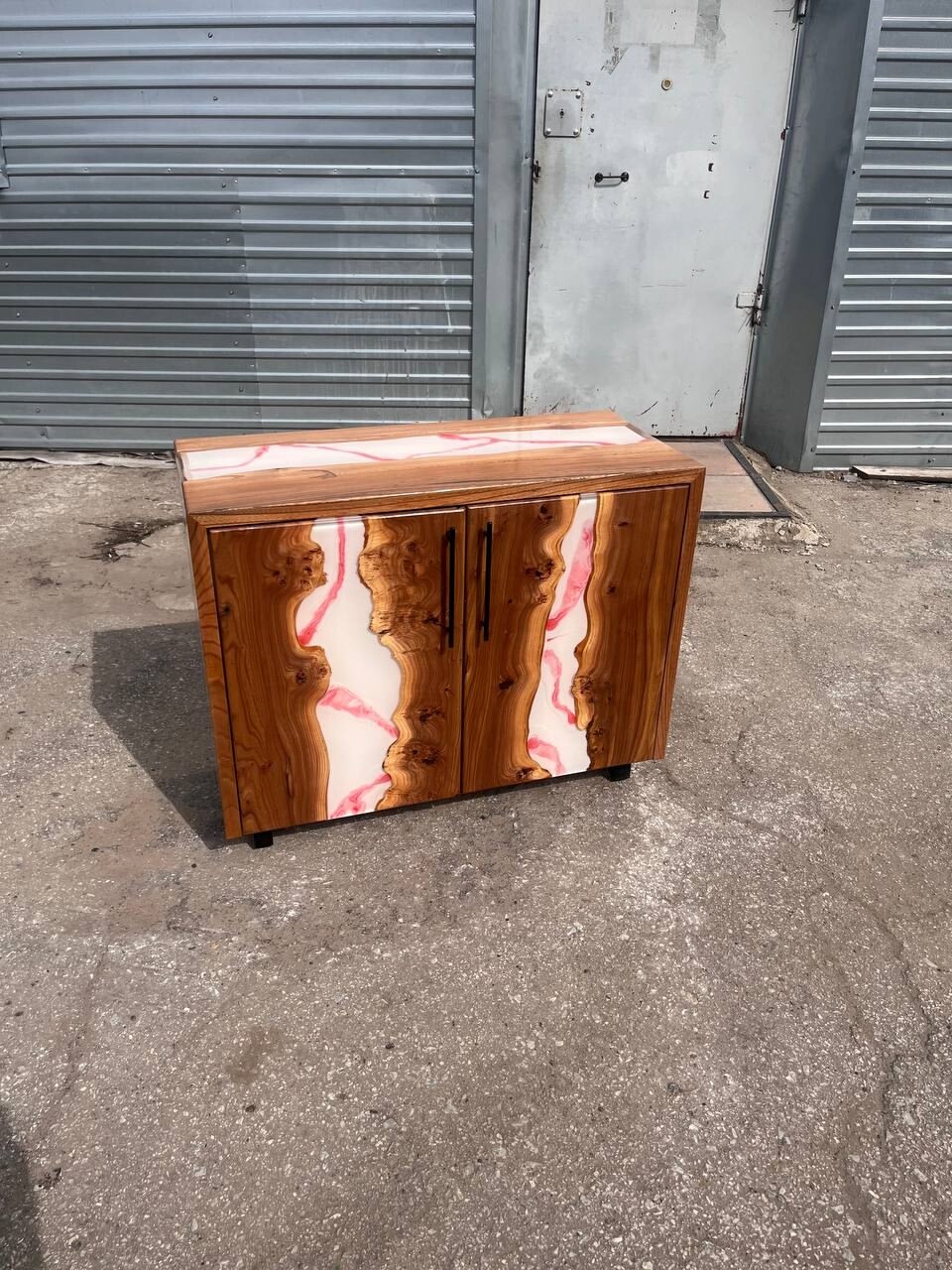 Тумба из массива карагача с заливкой белой-красной смолой № 94