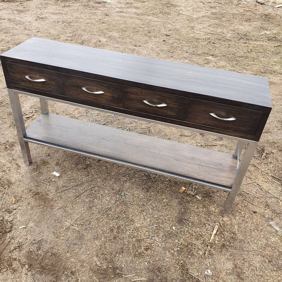 Комод выполненный из металла и дерева будет изюминкой интерьера, несмотря на то что конструкция может быть совершенно простой. Большая часть комодов изготавливается из массива карагача, дополнять такой аксессуар комнаты могут металлические профили или хромовое обрамление.